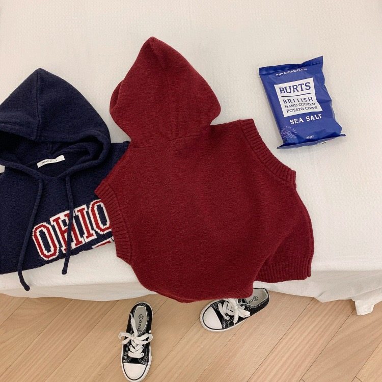 男女童针织马甲连帽衫春秋冬装儿童套头毛衣背心外穿宝宝毛线坎肩