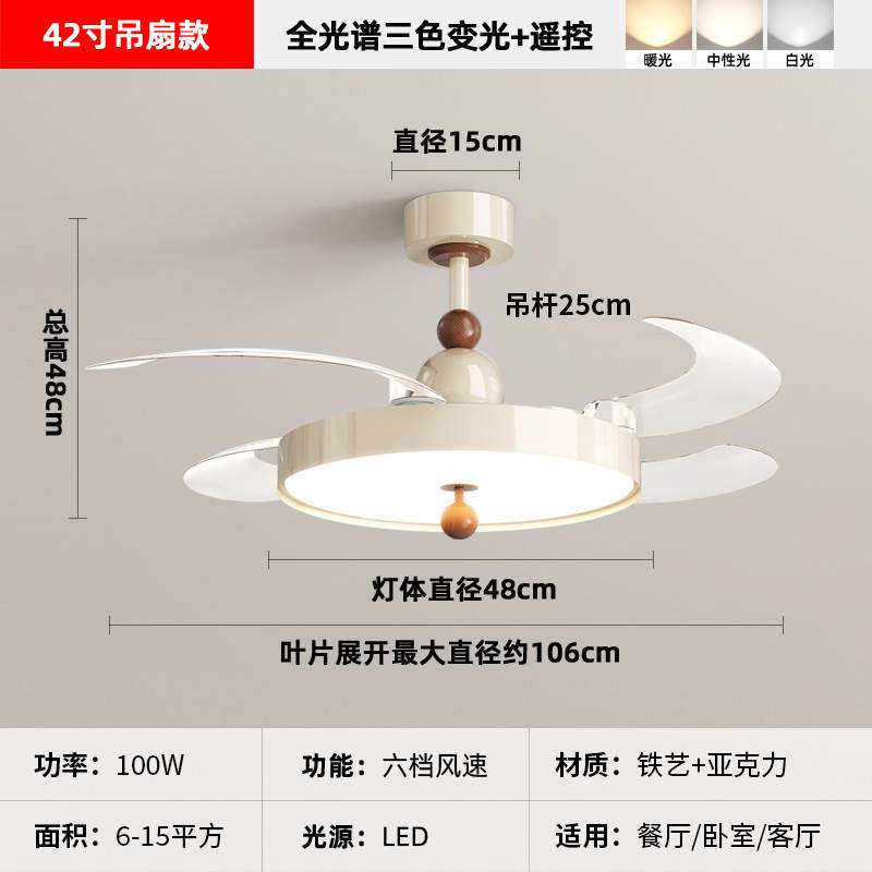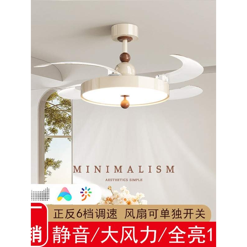 中古风扇灯法式奶油风卧室吊扇灯静音全光谱现代简约主卧餐厅灯具
