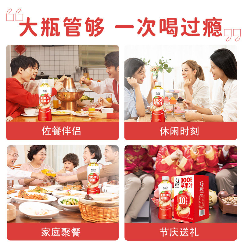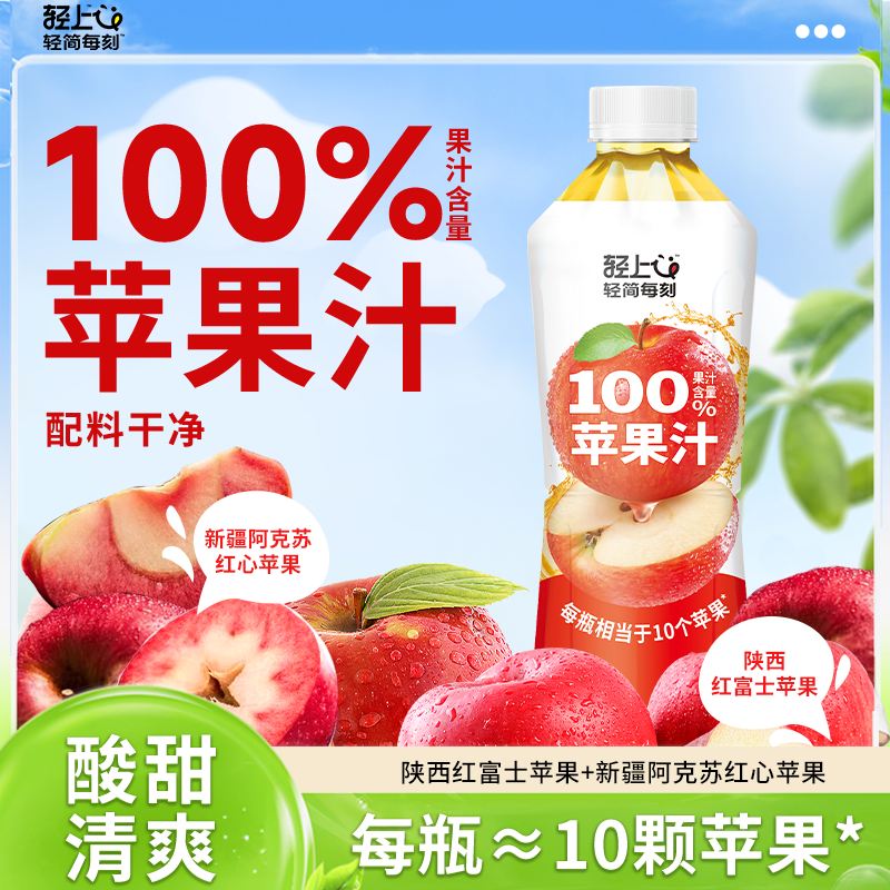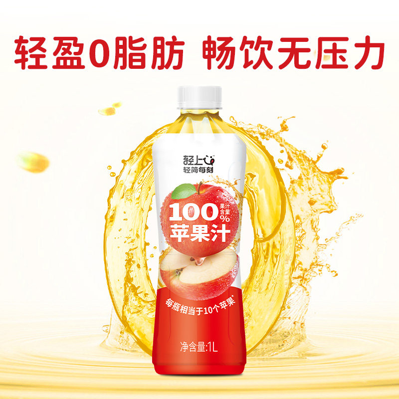 轻上100%大瓶果汁含量苹果汁饮品0脂果蔬汁苹果浓缩饮料整箱装