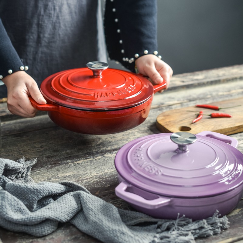 小幸福珐琅锅铸铁锅焖焗锅家用多功能炖锅海鲜锅煲汤锅电磁炉通用