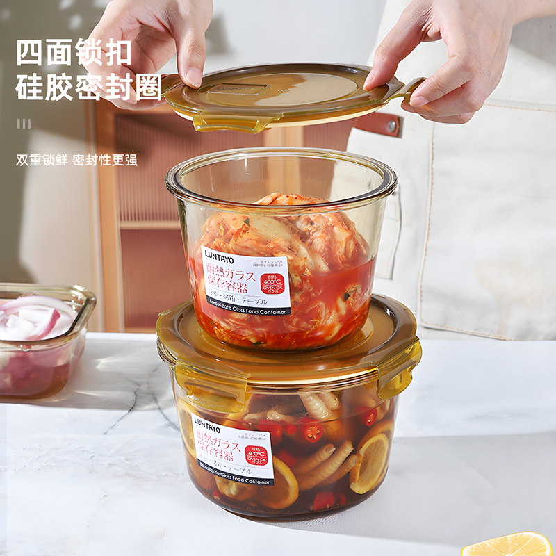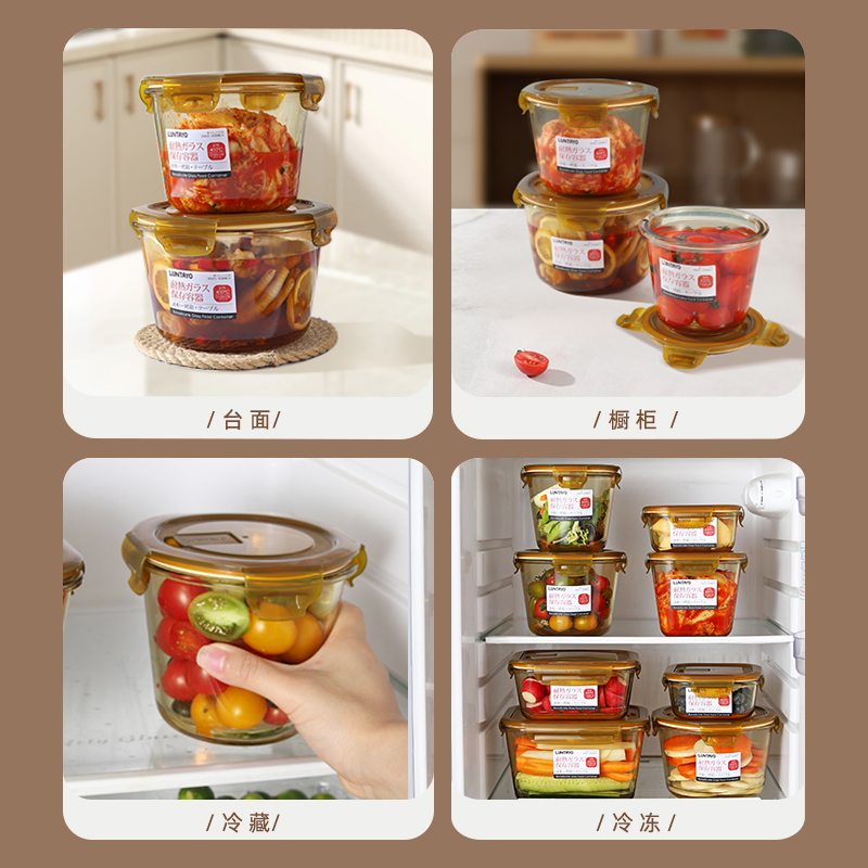 日本luntayo琥珀色玻璃保鲜盒食品级上班族带饭可微波炉加热饭盒