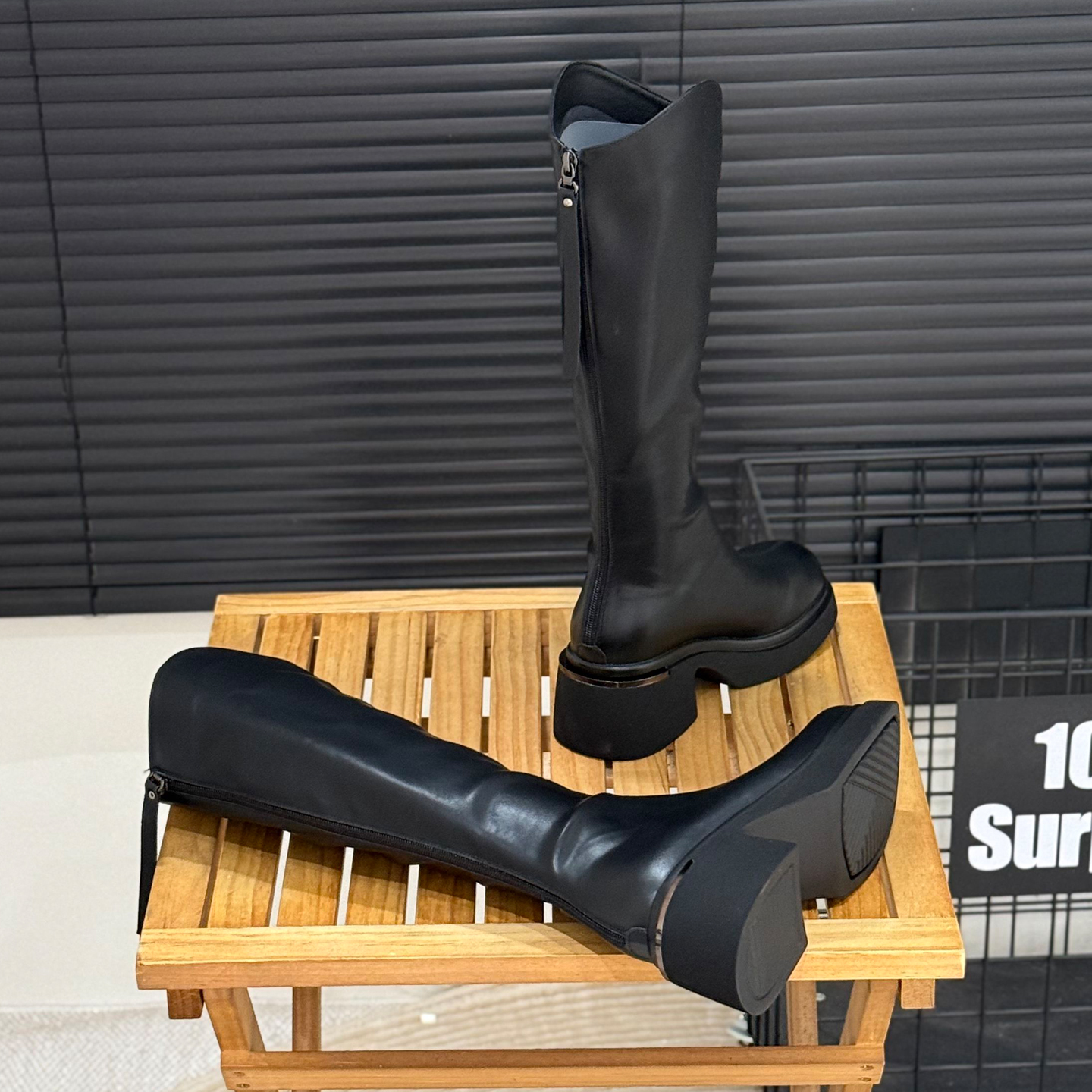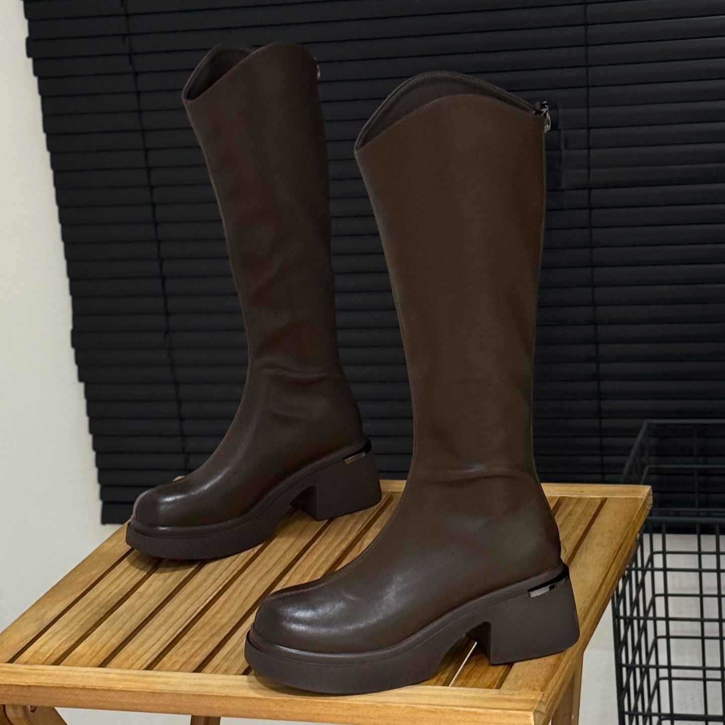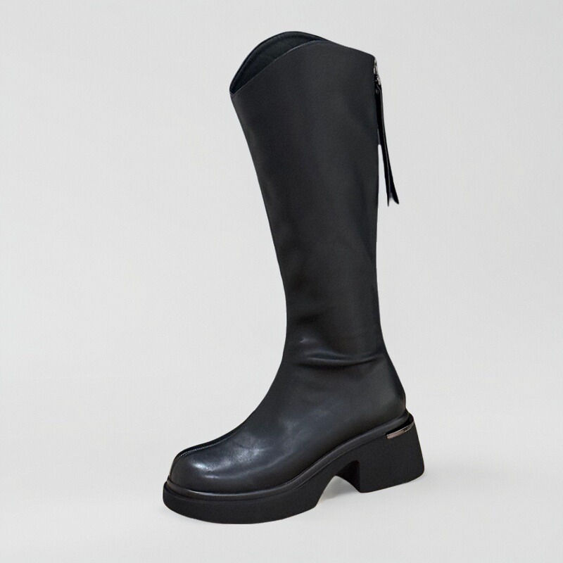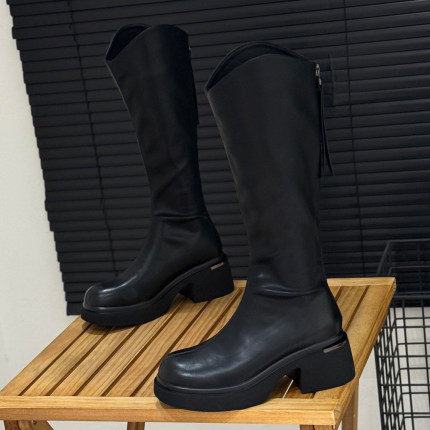 6cm增高粗跟高筒骑士靴v口长靴子