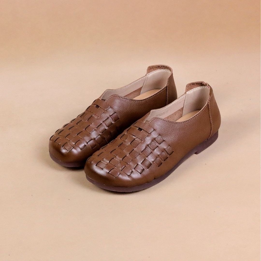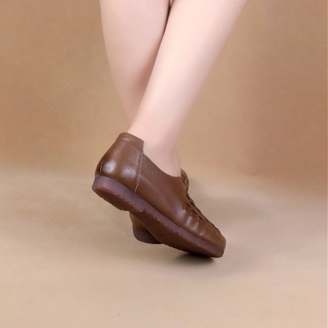 2025秋款舒适牛筋底妈妈鞋民族风真皮复古休闲平跟防滑牛皮单鞋女