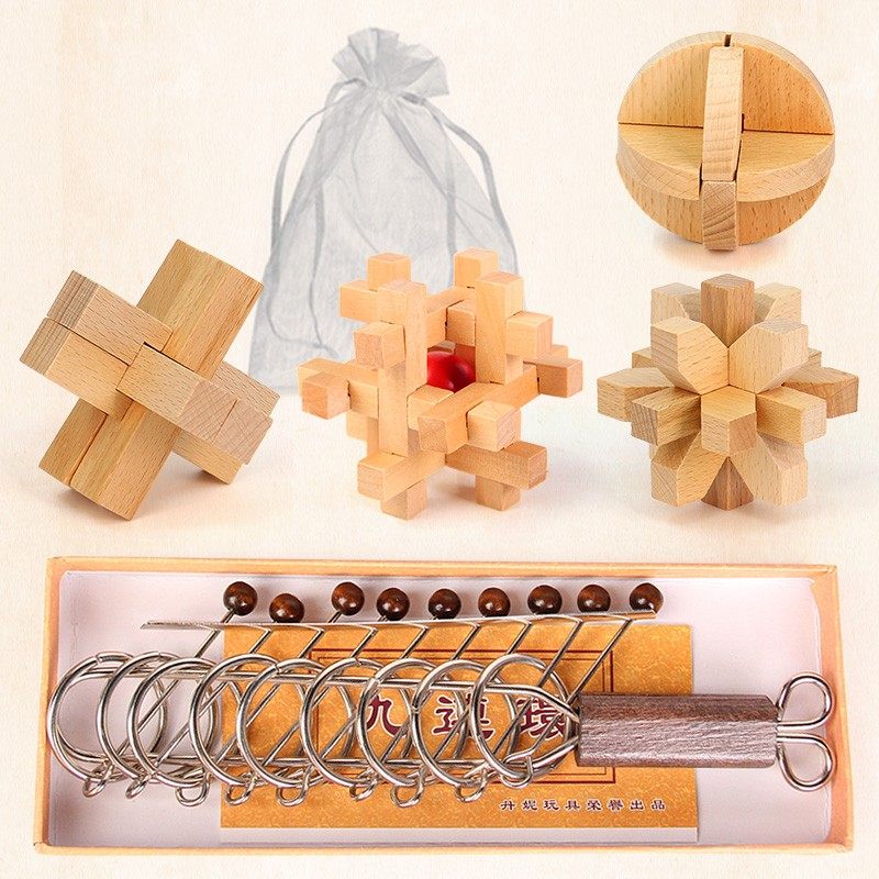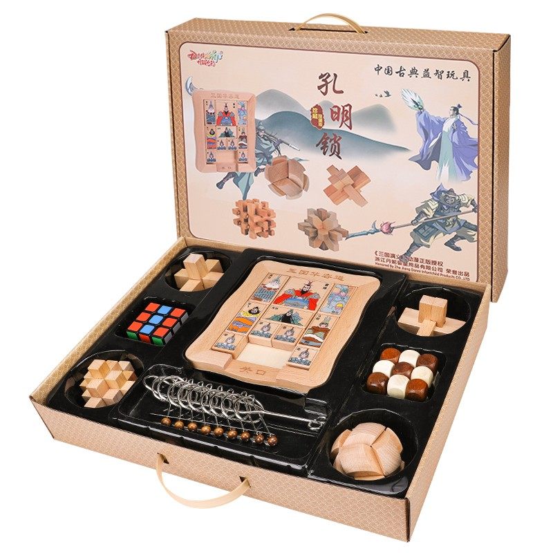 孔明锁鲁班锁套装礼盒成年九连环高难度小学生儿童益智力玩具全套
