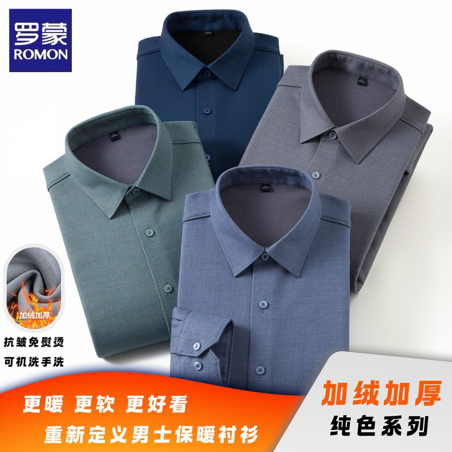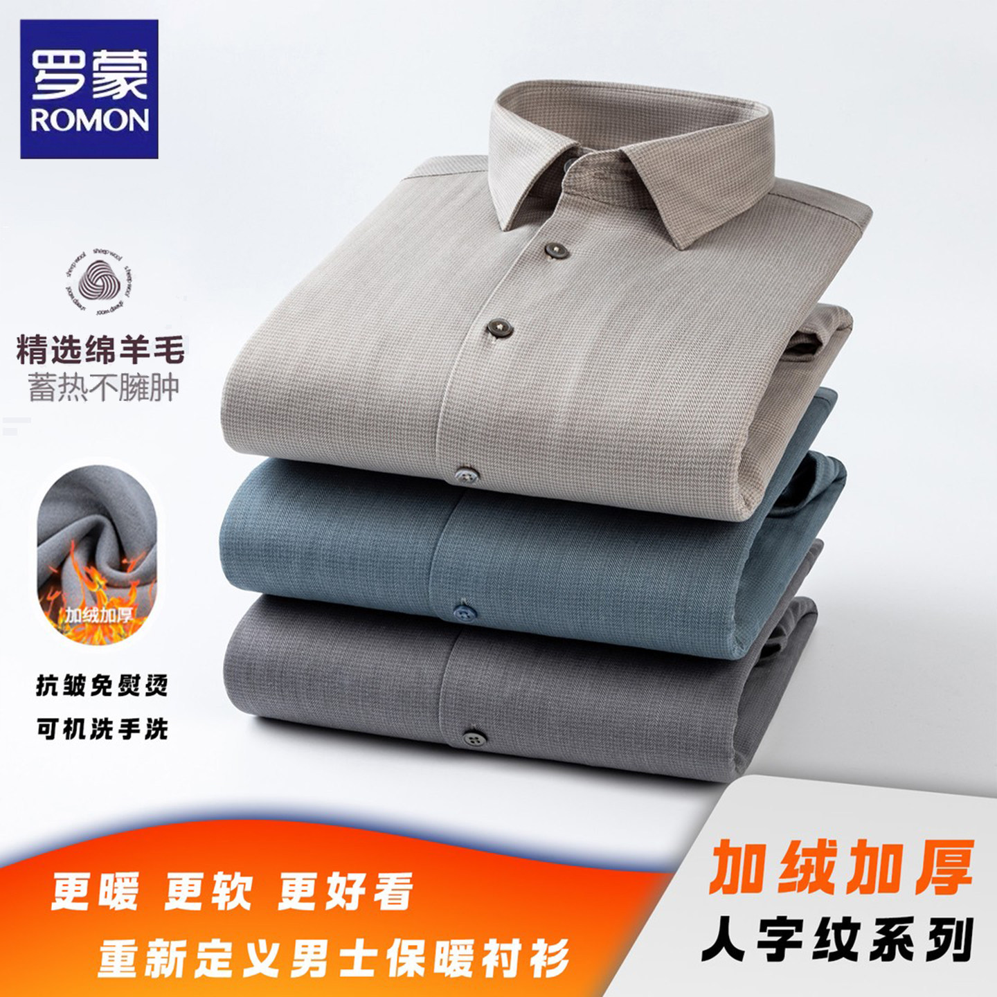 罗蒙绵羊毛加绒衬衫男士冬季商务休闲加厚亲肤保暖衬衣上衣打底衫