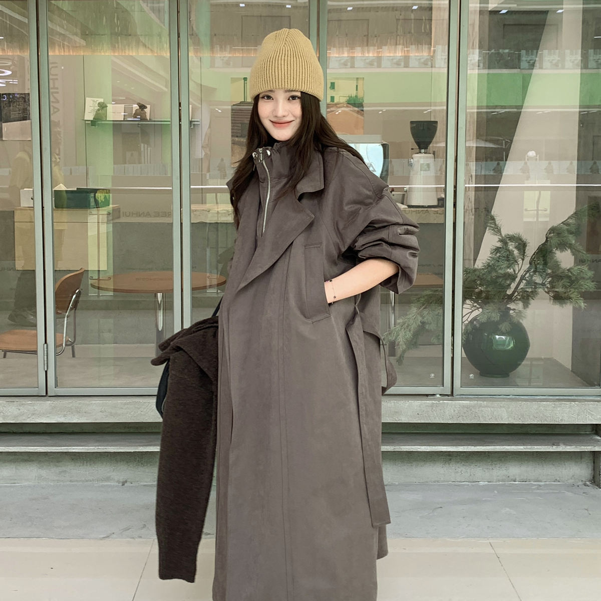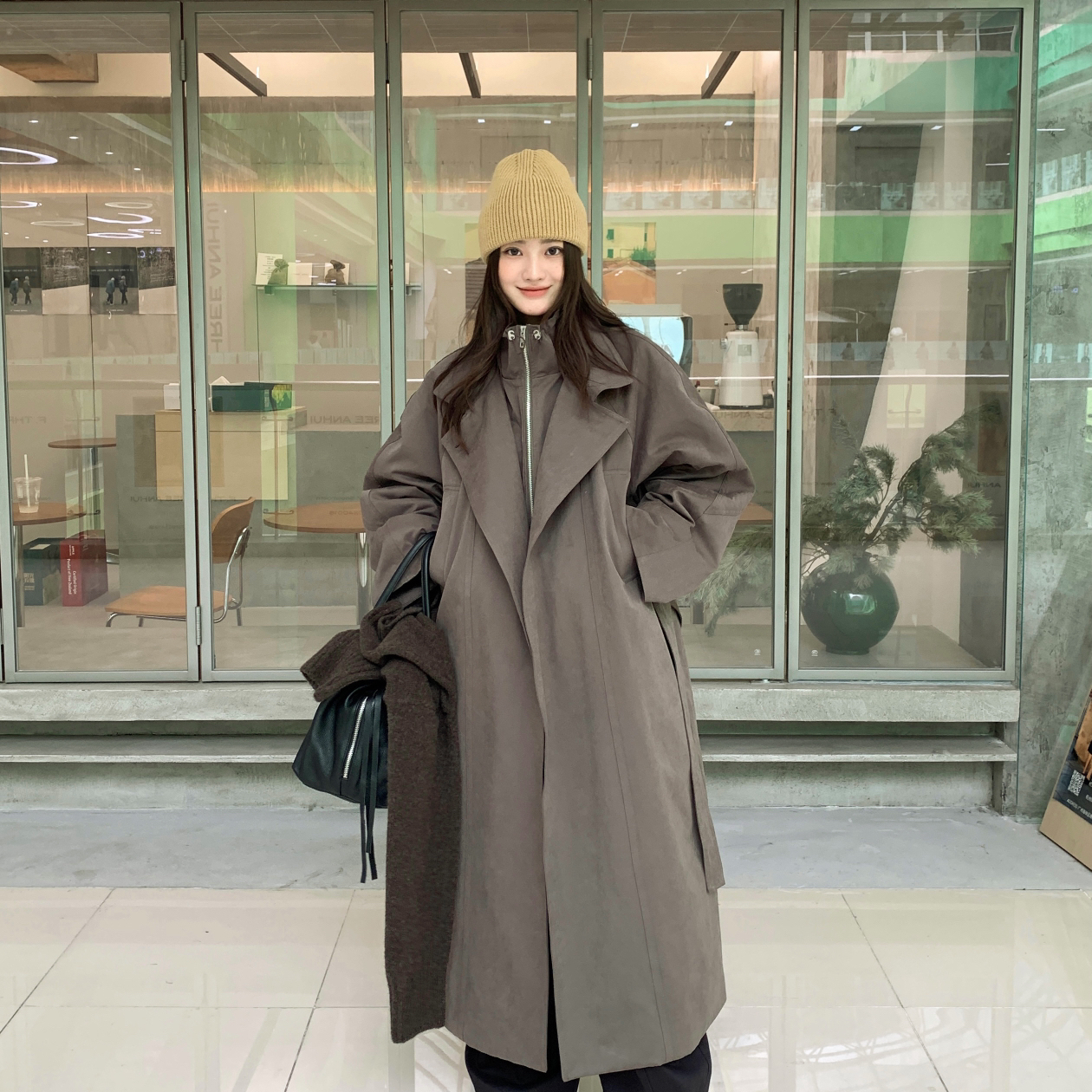 F.THREE三姐妹-设计感假两件通勤宽松夹棉外套风衣(配腰带)99229