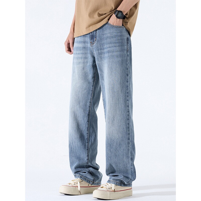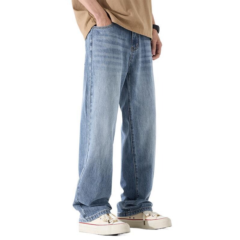进口男士休闲美式牛仔裤男秋季新款薄款宽松直筒裤男百搭长裤男款