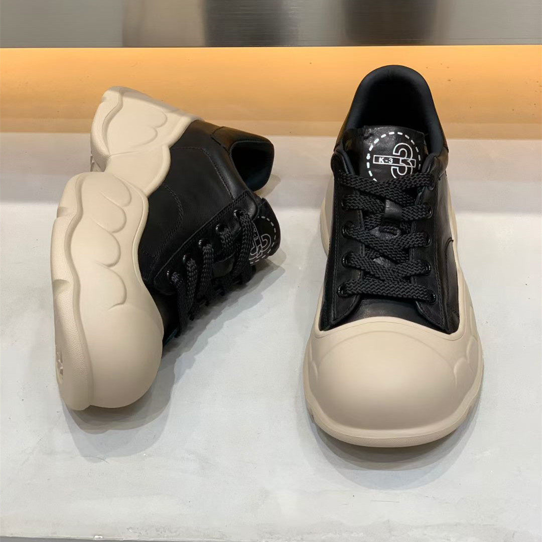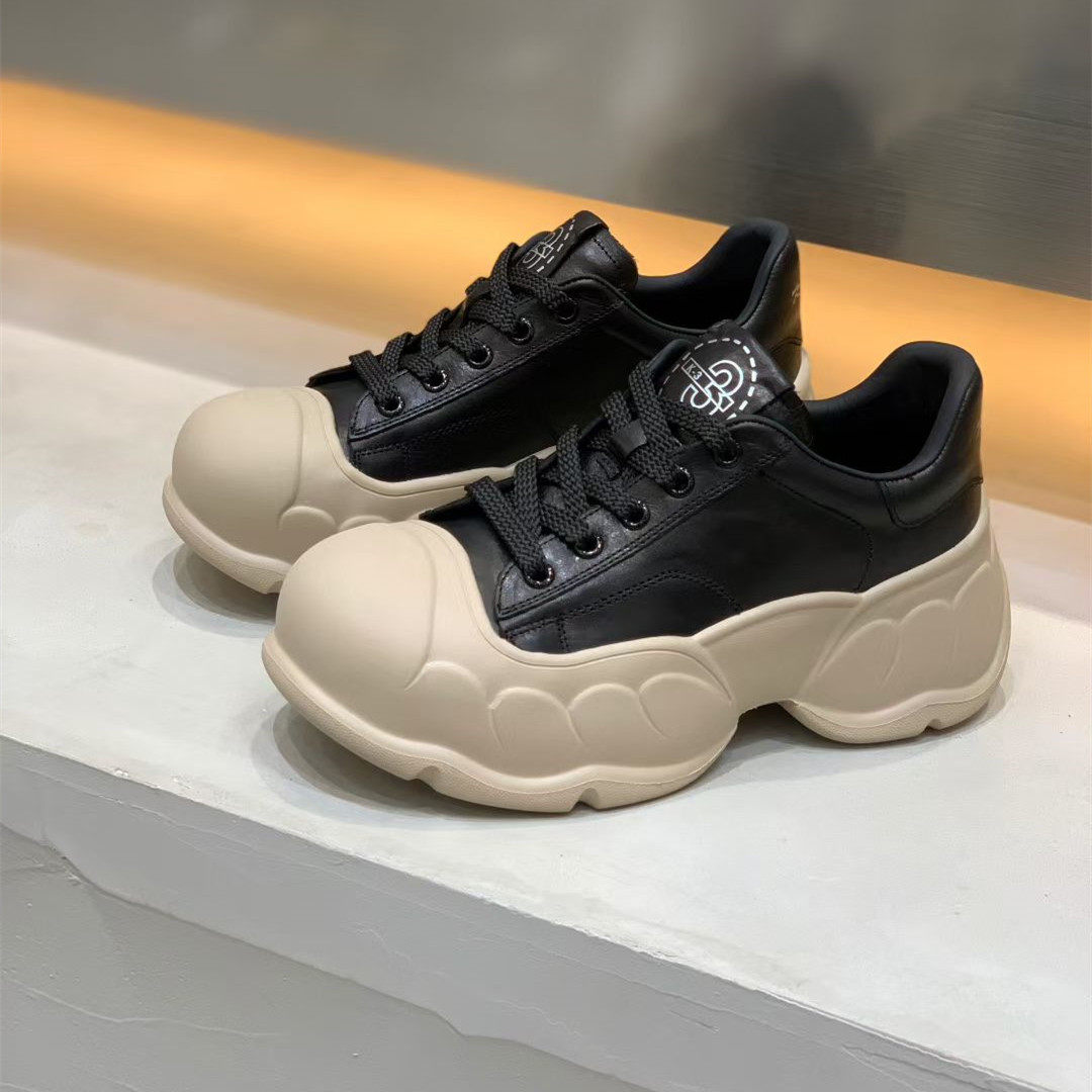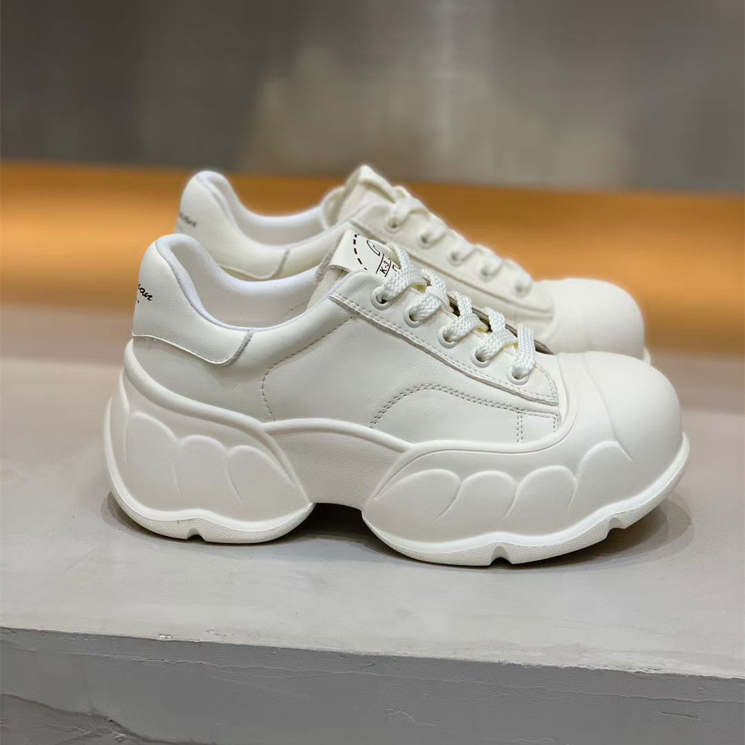 欧洲站2025秋季新款真皮女鞋圆头厚底松糕鞋女休闲运动鞋女鞋单鞋