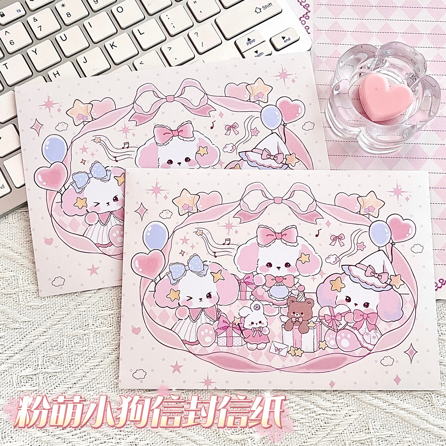 粉萌小狗信封信纸套装高颜值卡通手写留言祝福创意纪念礼物信笺