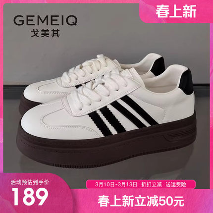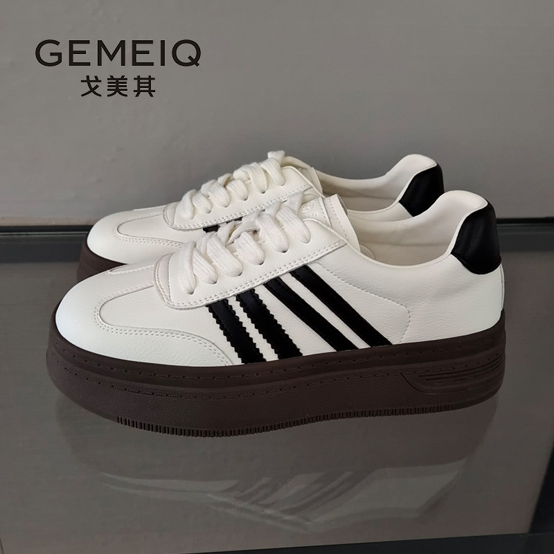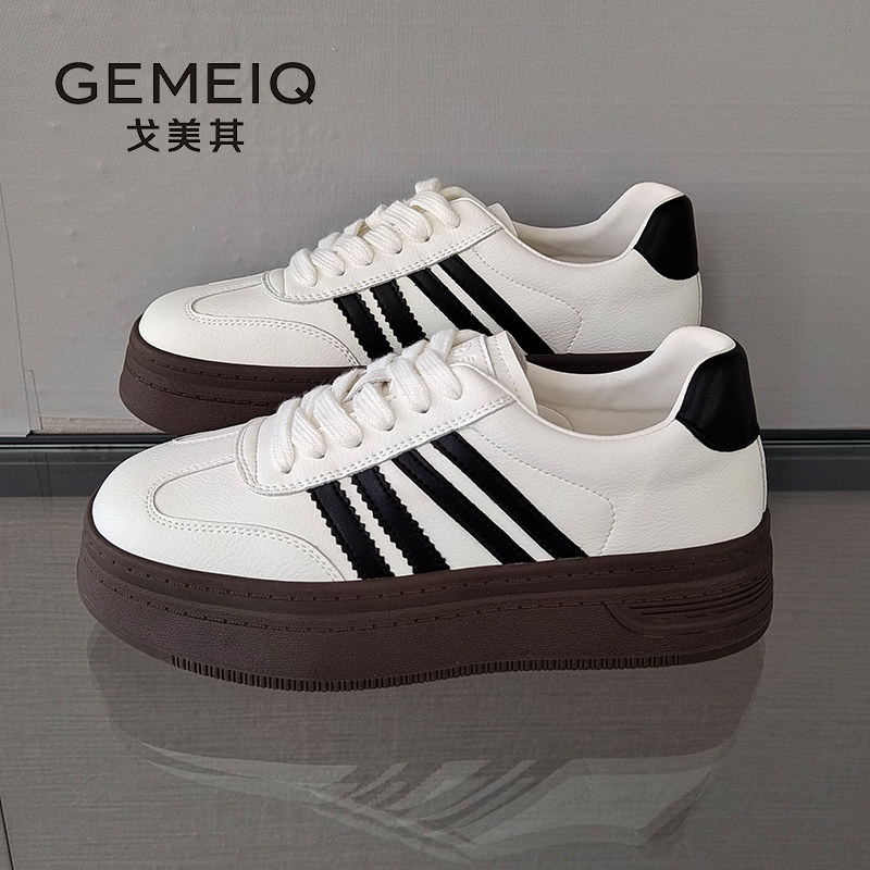 戈美其商场同款德训鞋女2025秋季新款复古板鞋厚底休闲阿甘小白鞋