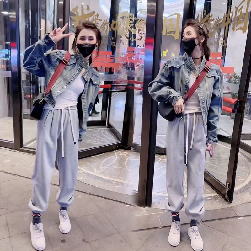 欧货春秋季复古怀旧牛仔短外套女
