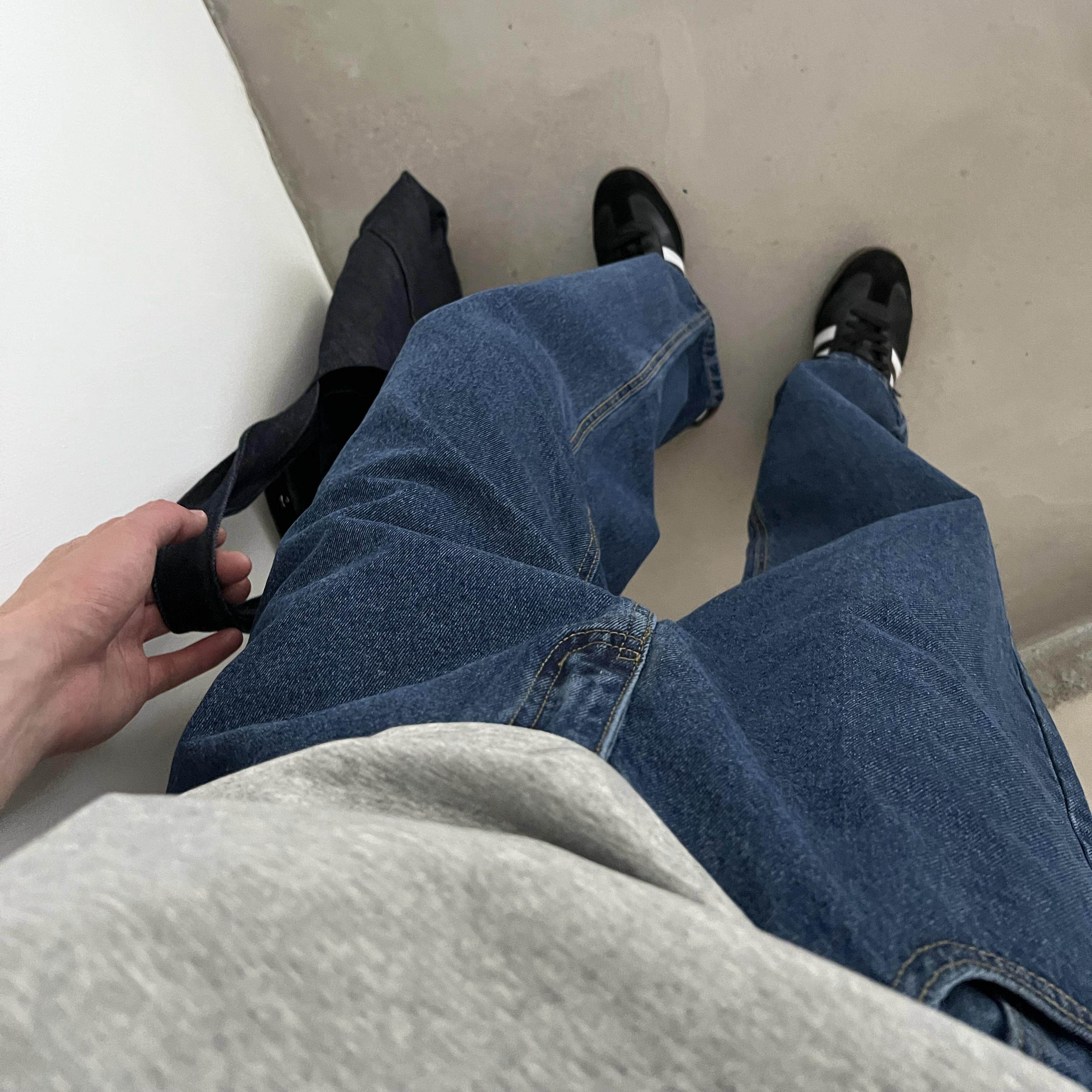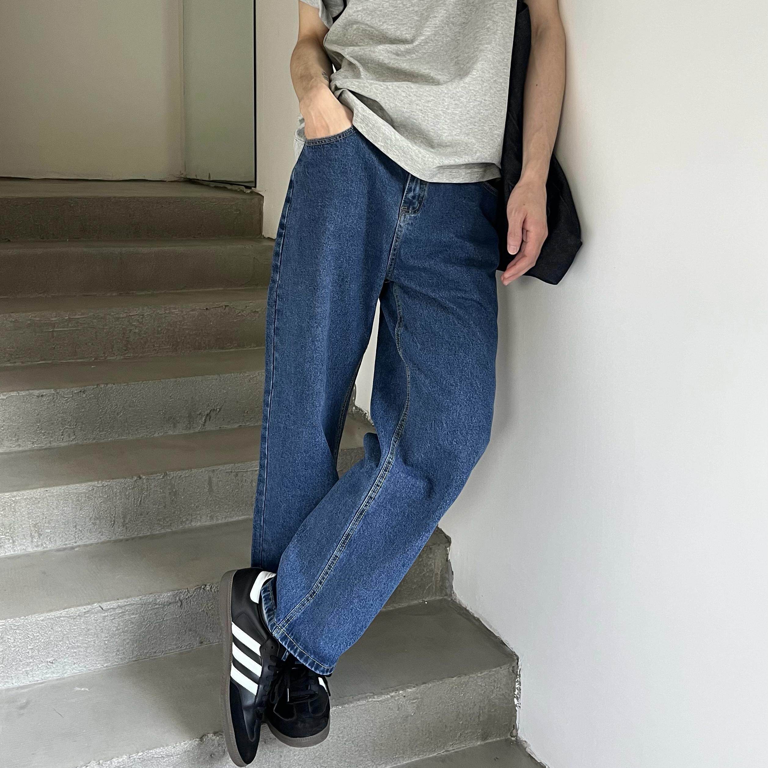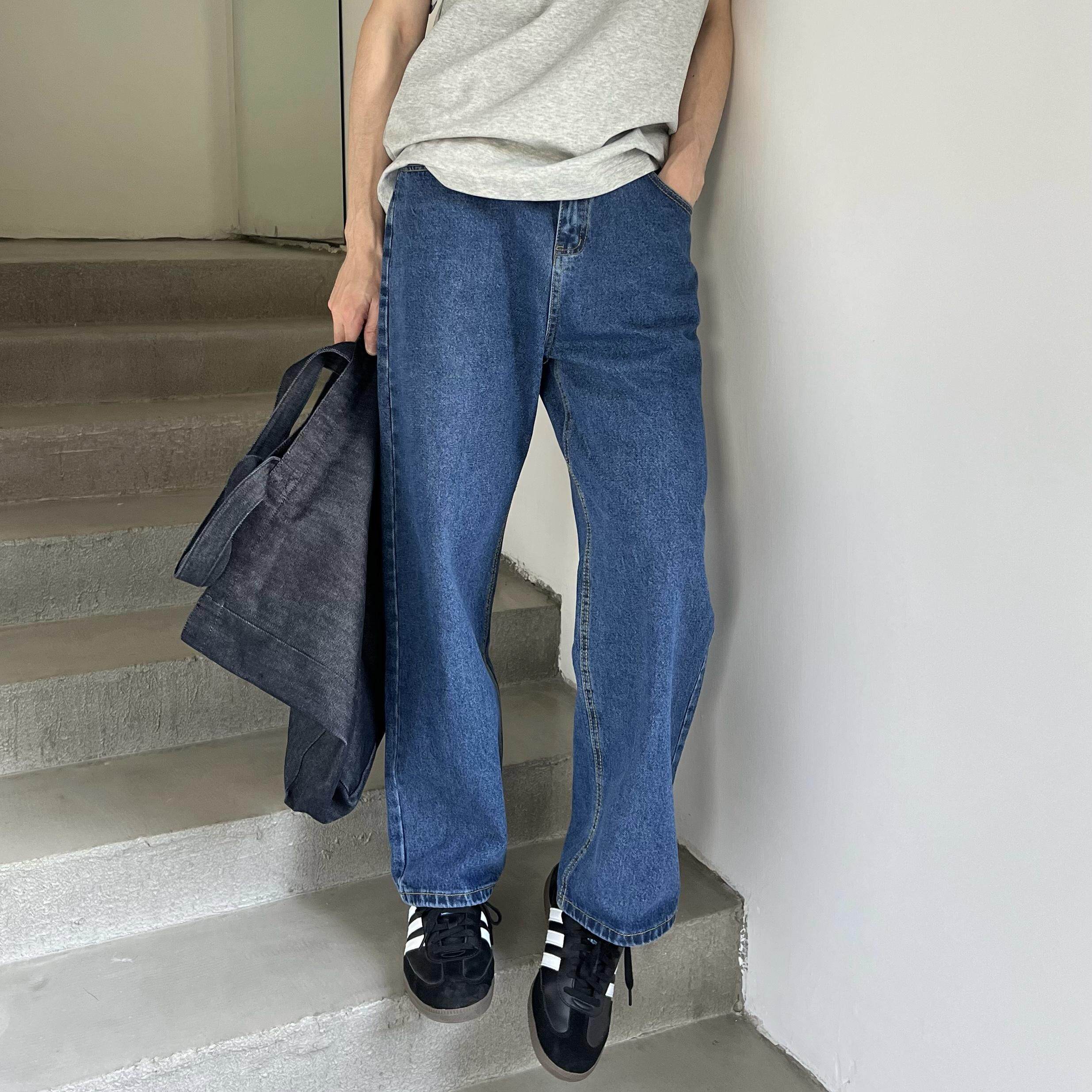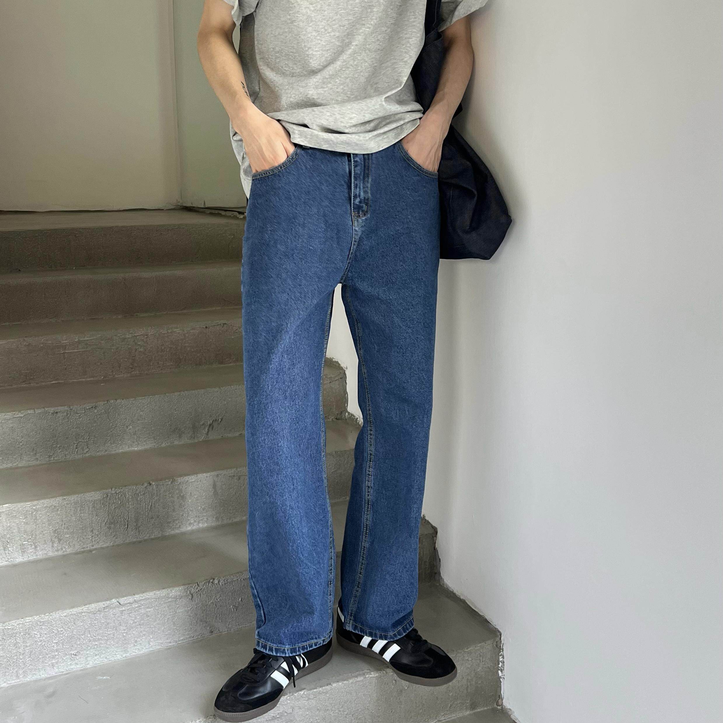 Nick Tian新款韩系复古蓝色水洗牛仔裤男宽松休闲小直筒锥形长裤