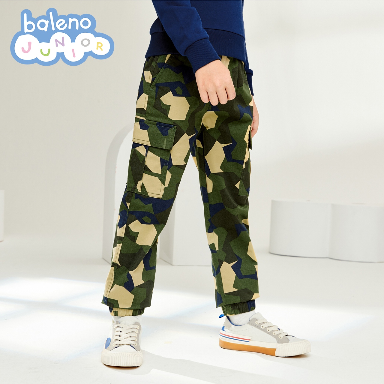 班尼路童装秋季新款男童时尚休闲潮流百搭印花梭织工装束脚长裤