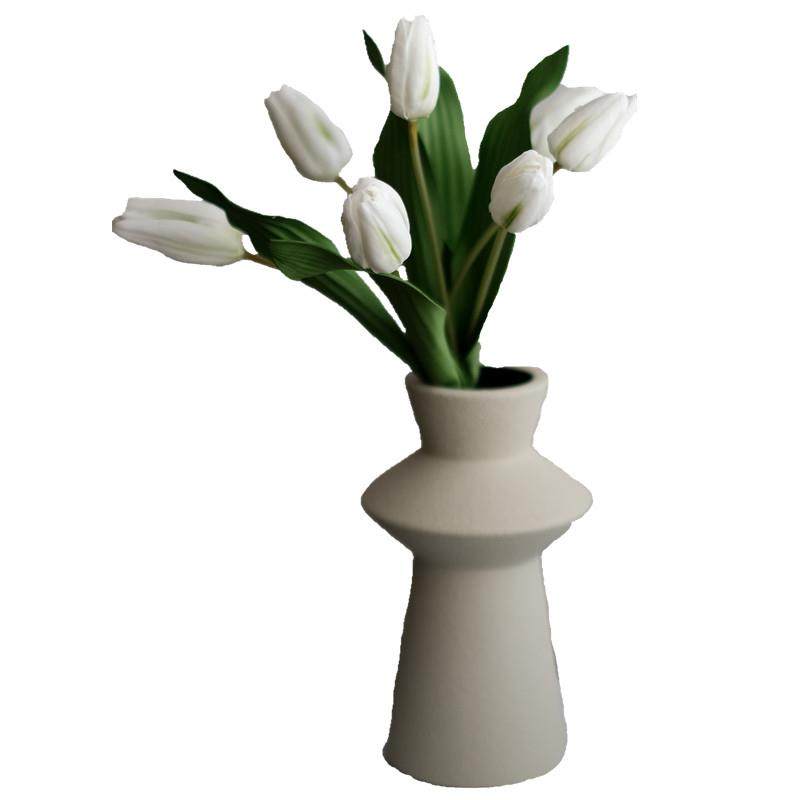 高档白色郁金香仿真花摆件手捧花客厅摆设假花花束花艺插花装饰