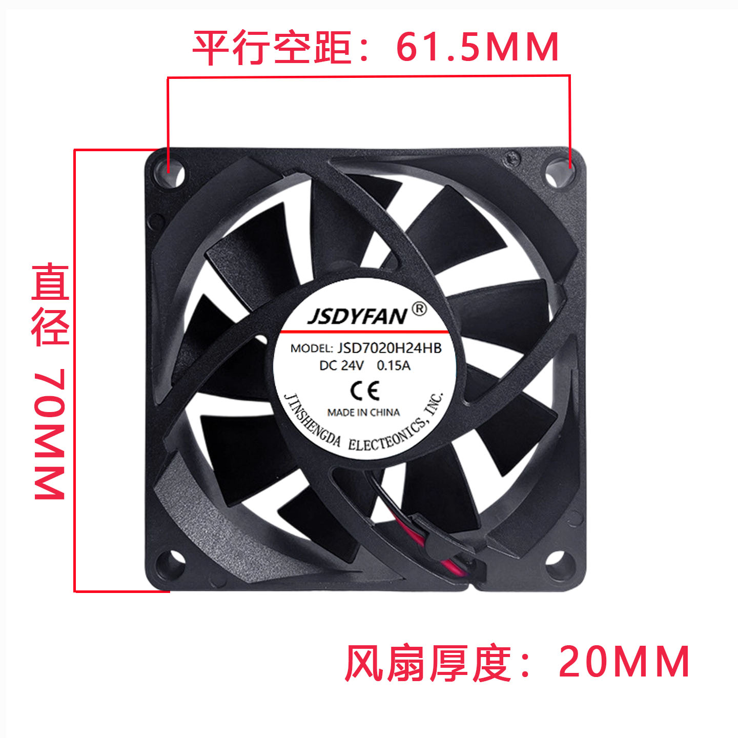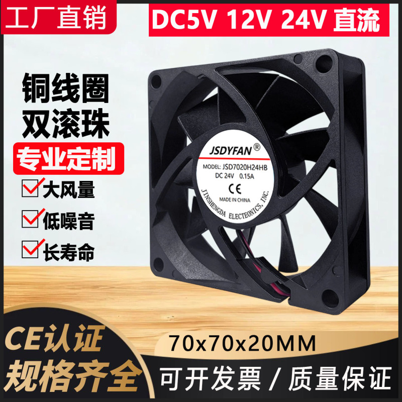 厂家直销DC7020风扇12V/24V含油滚珠静音暖风机吸尘器散热风扇7cm