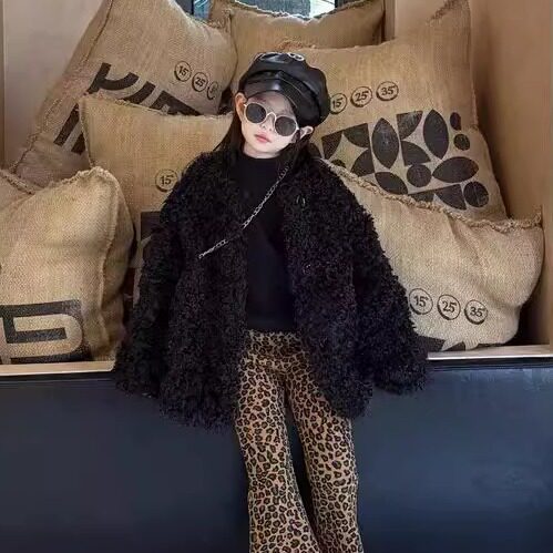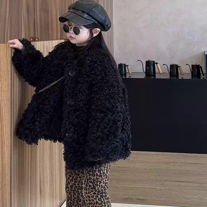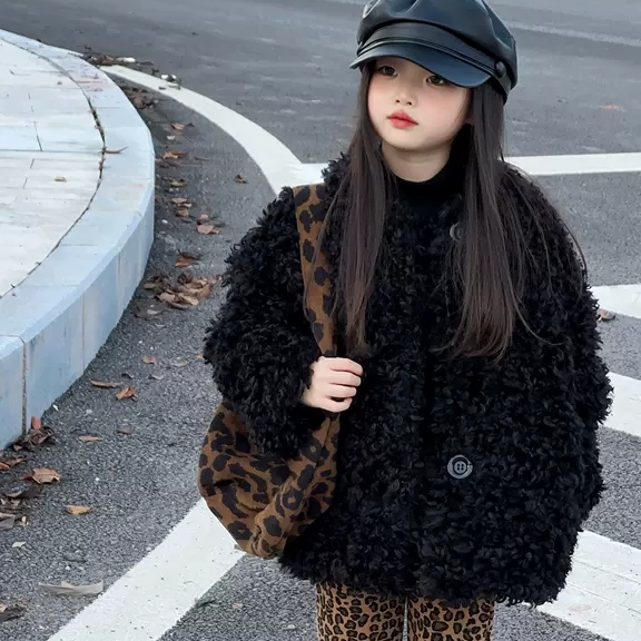 女童秋冬季皮草外套2025新款儿童洋气加厚毛毛衣中大童加厚大衣潮