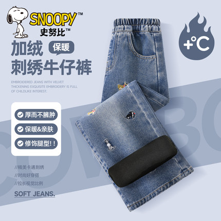 史努比冬季新款女童加绒牛仔裤