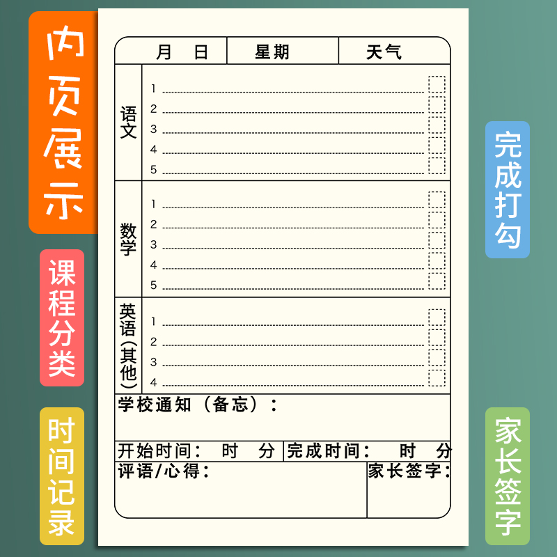 小学生家庭作业登记本初中小学一二三年级课堂做业抄写检查记录本儿童用家校联系簿牛皮纸作页本记作业小本子