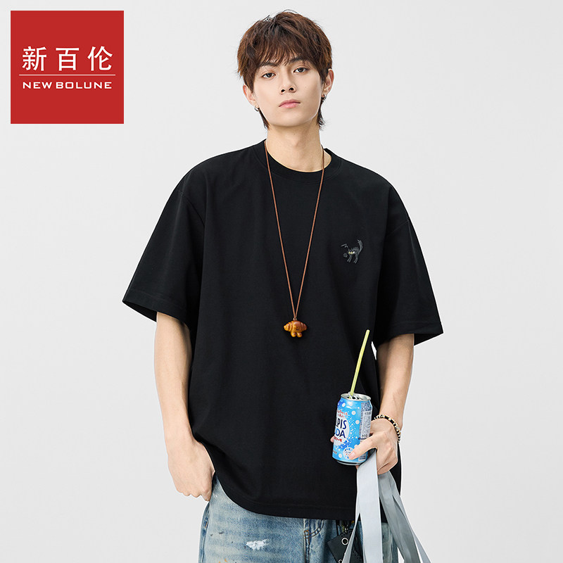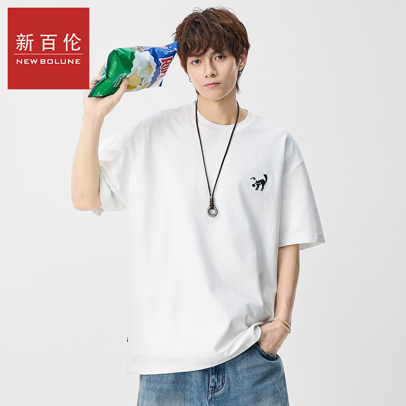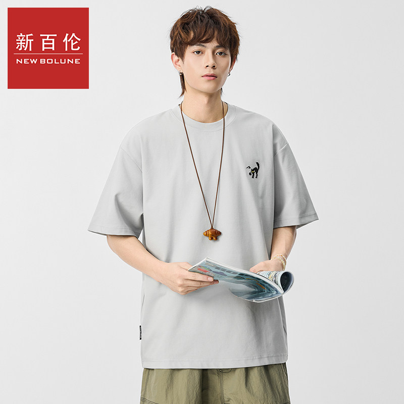 新百伦圆领刺绣短袖T恤男士2026夏季新款复古宽松百搭潮流休闲T恤
