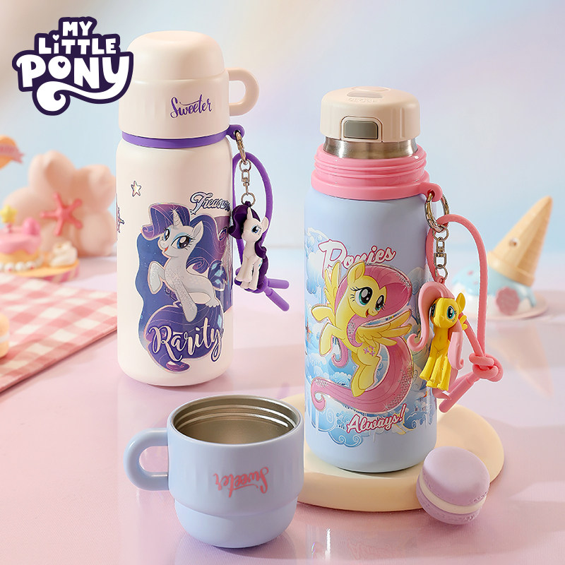 小马宝莉500ml儿童保温杯学生水杯高颜值双饮水壶吸管杯316不锈钢