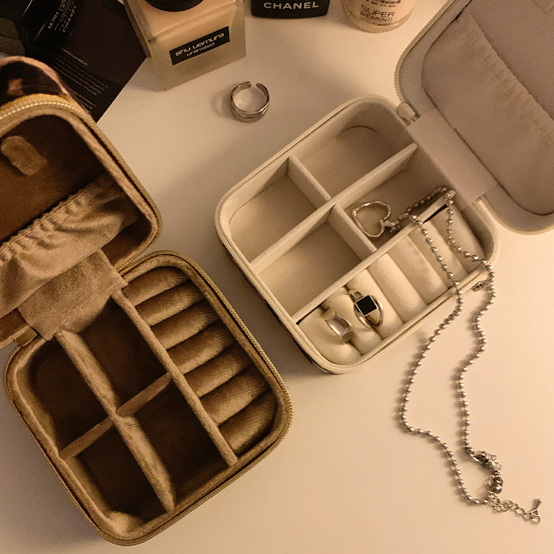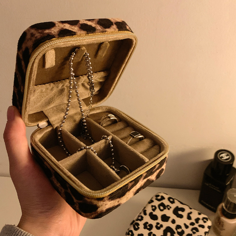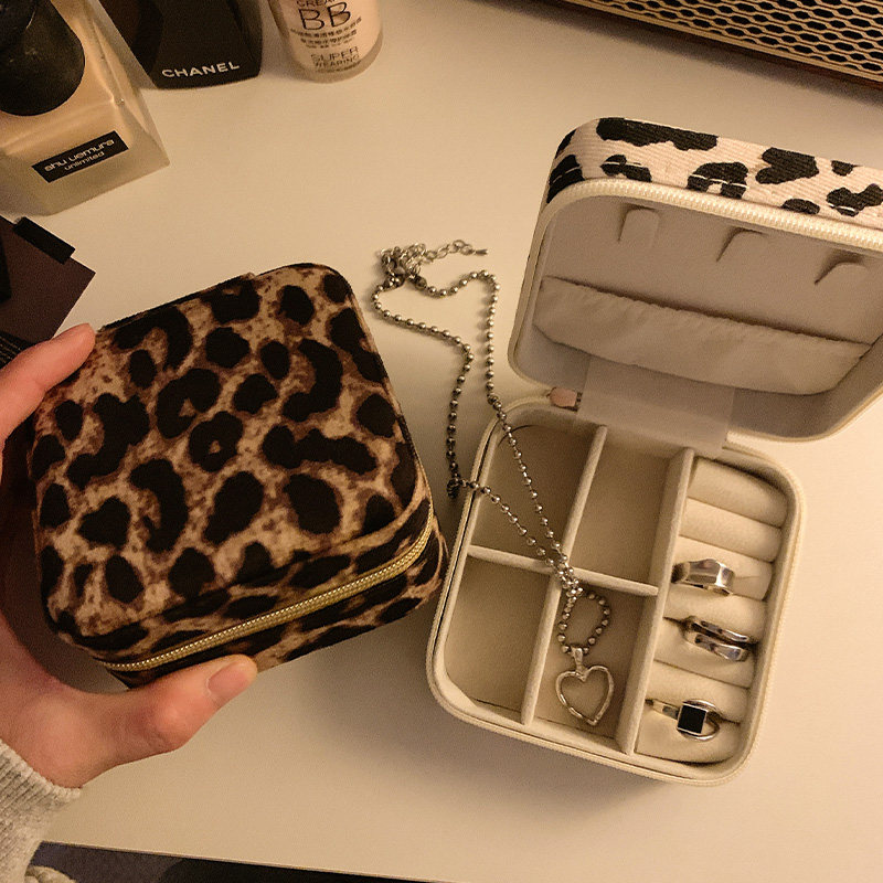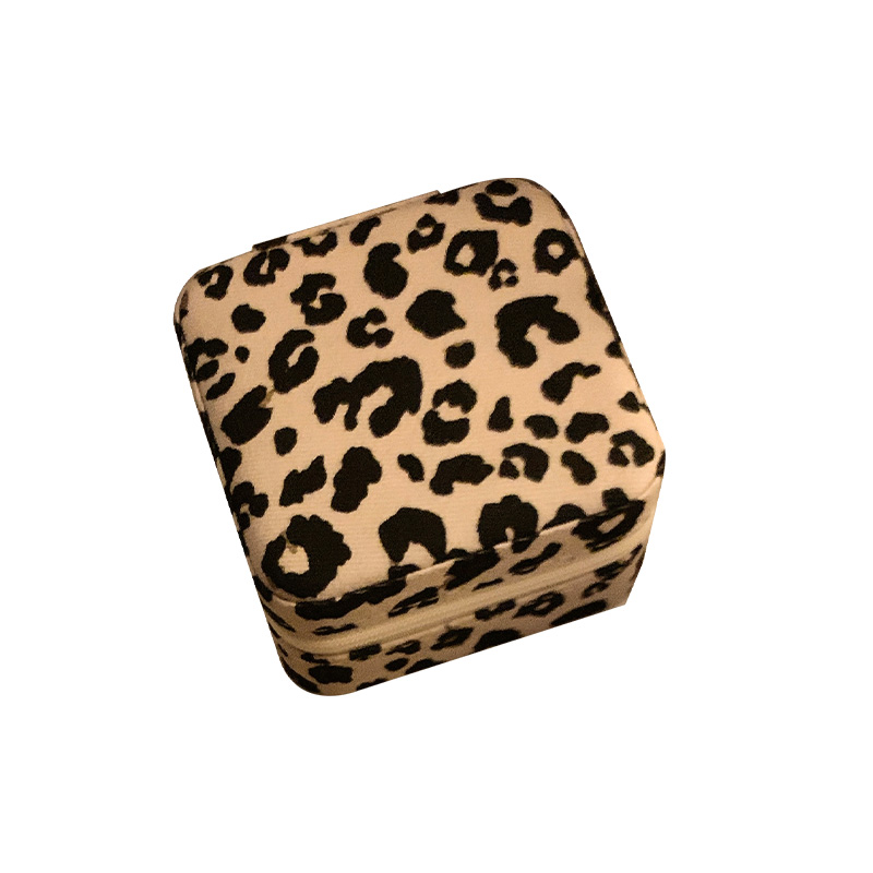 豹纹便携首饰盒耳钉戒指收纳盒