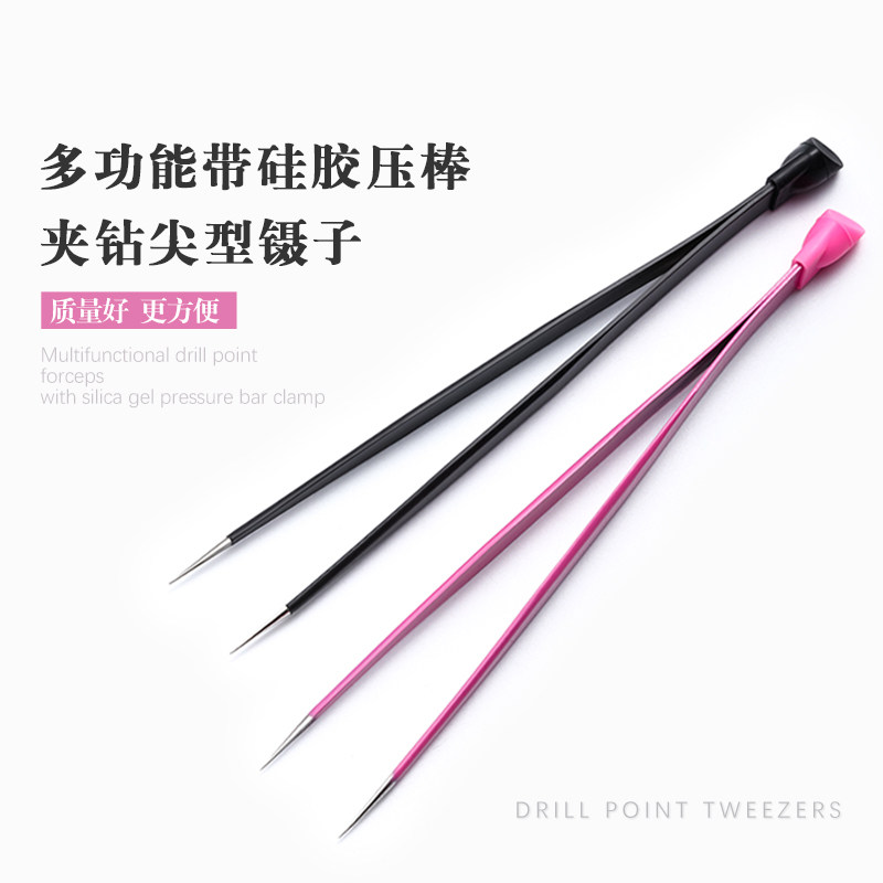美甲两用镊子工具尖头防静电多功能背带硅胶压贴纸夹取贝壳饰钻饰
