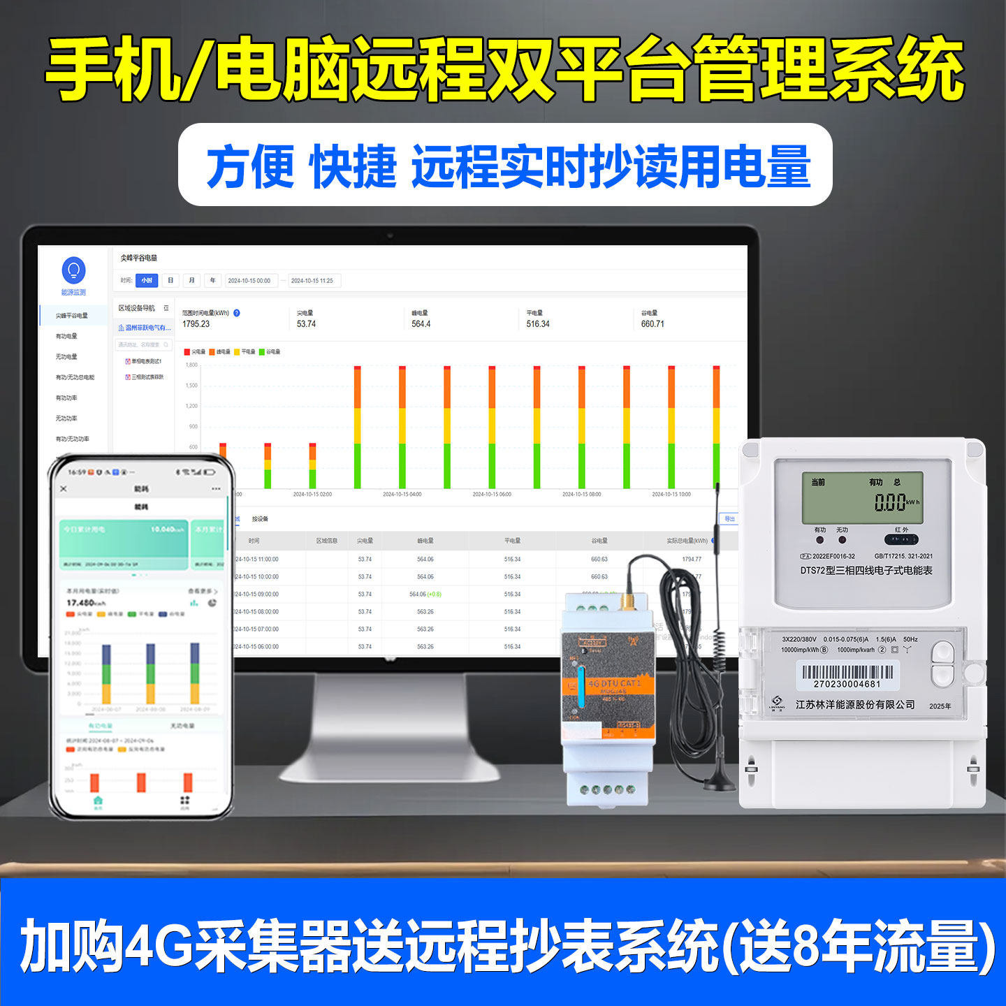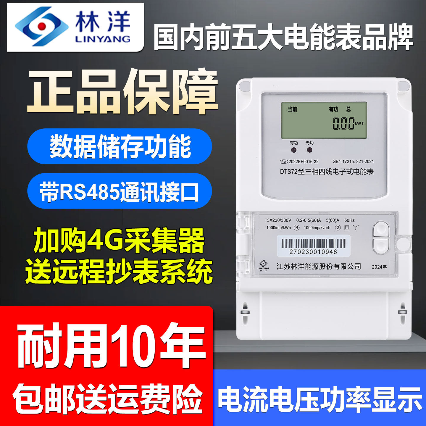 正品林洋DTS72三相四线380V智能峰平谷互感式厂房用100A远程电表