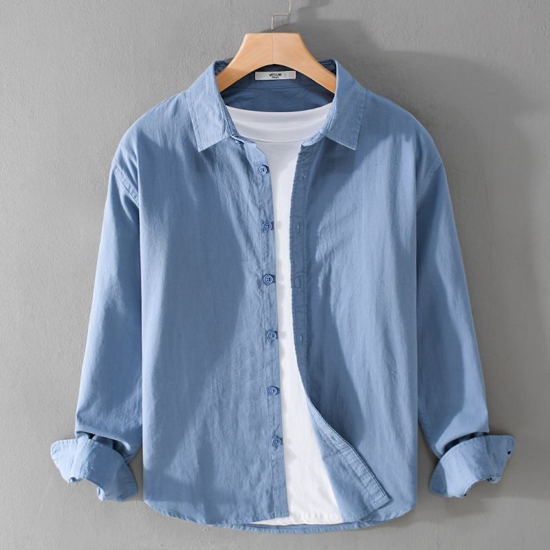春秋新款纯棉长袖衬衫洋气休闲宽松青年百搭白色外穿男衬衣男装