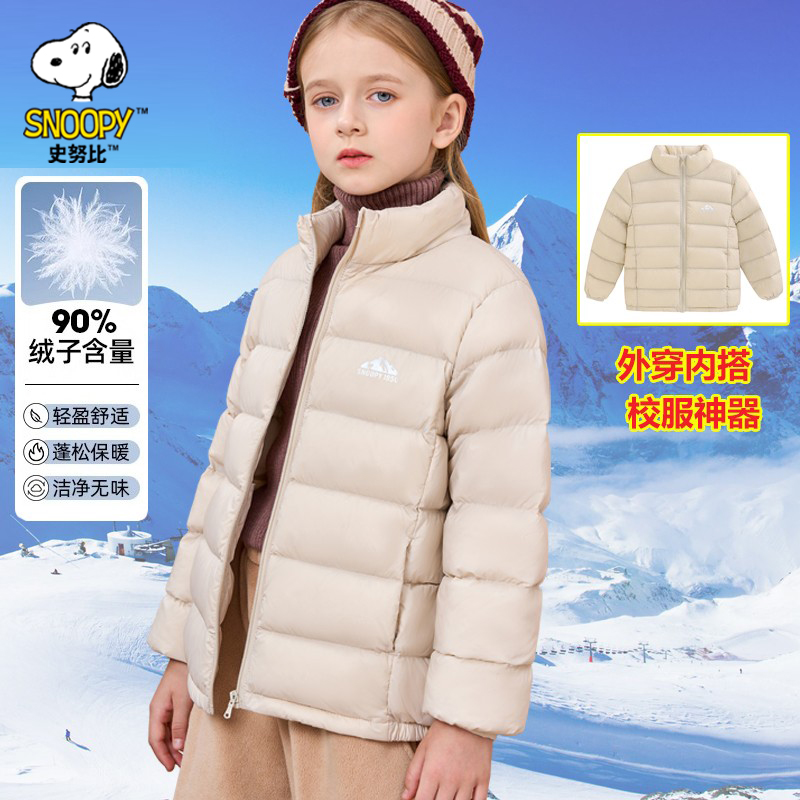 正品史努比亲子装儿童羽绒服中大童女孩羽绒内胆秋冬装外套90鸭绒