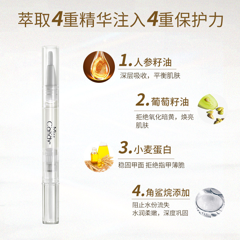 MissCandy指甲护理人参籽精华笔润泽护甲油防倒刺透明营养油
