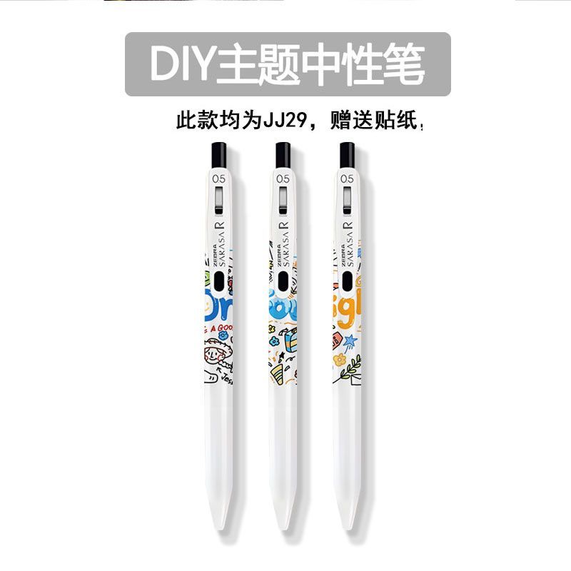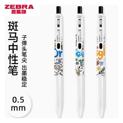 日本ZEBRA斑马简笔画限定DIY中性笔白杆不晕染黑色按动笔JJ29浓墨