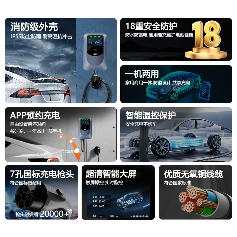 特斯拉比亚迪新能源电动汽车充电桩7kw家用家庭通用32A吉利充电枪