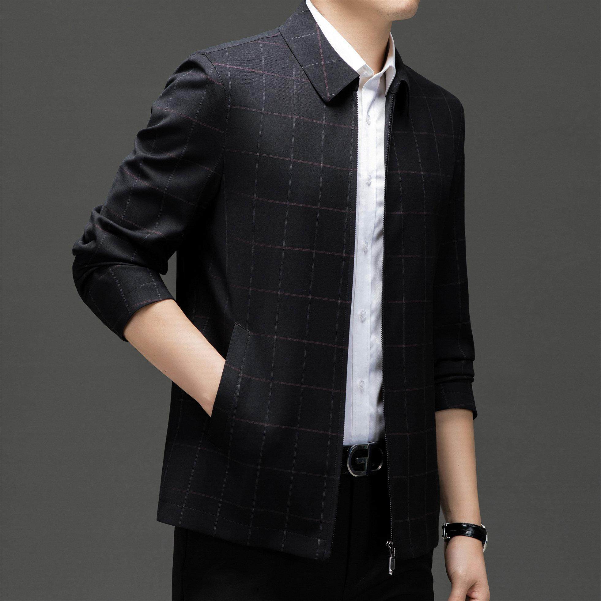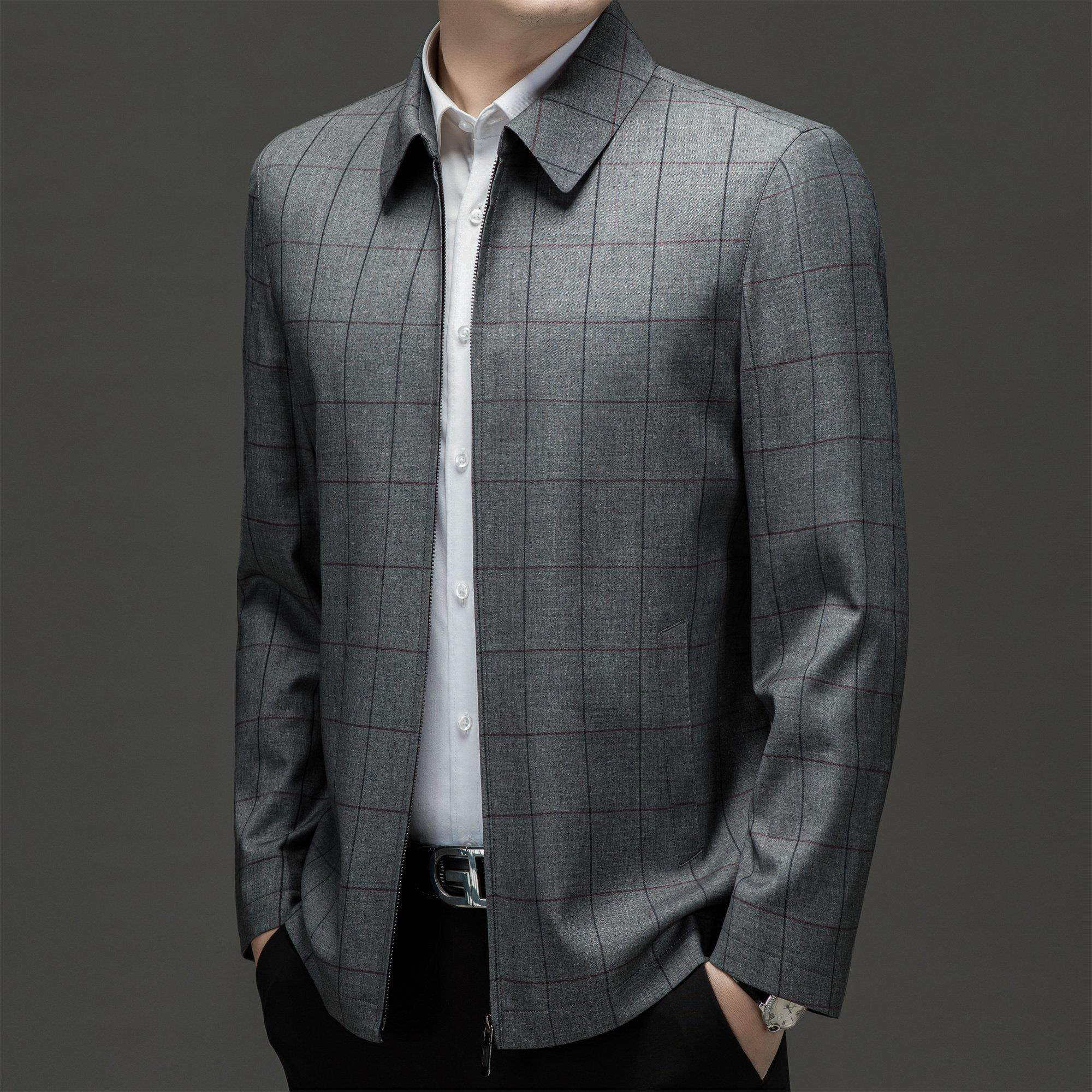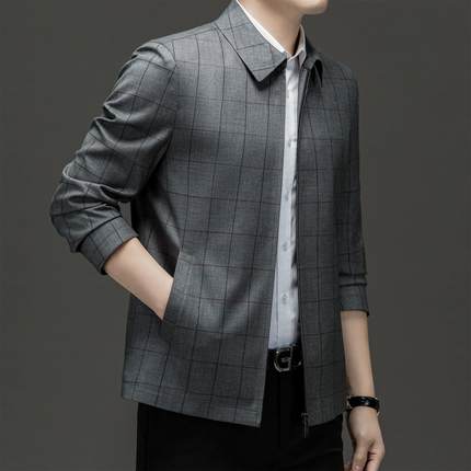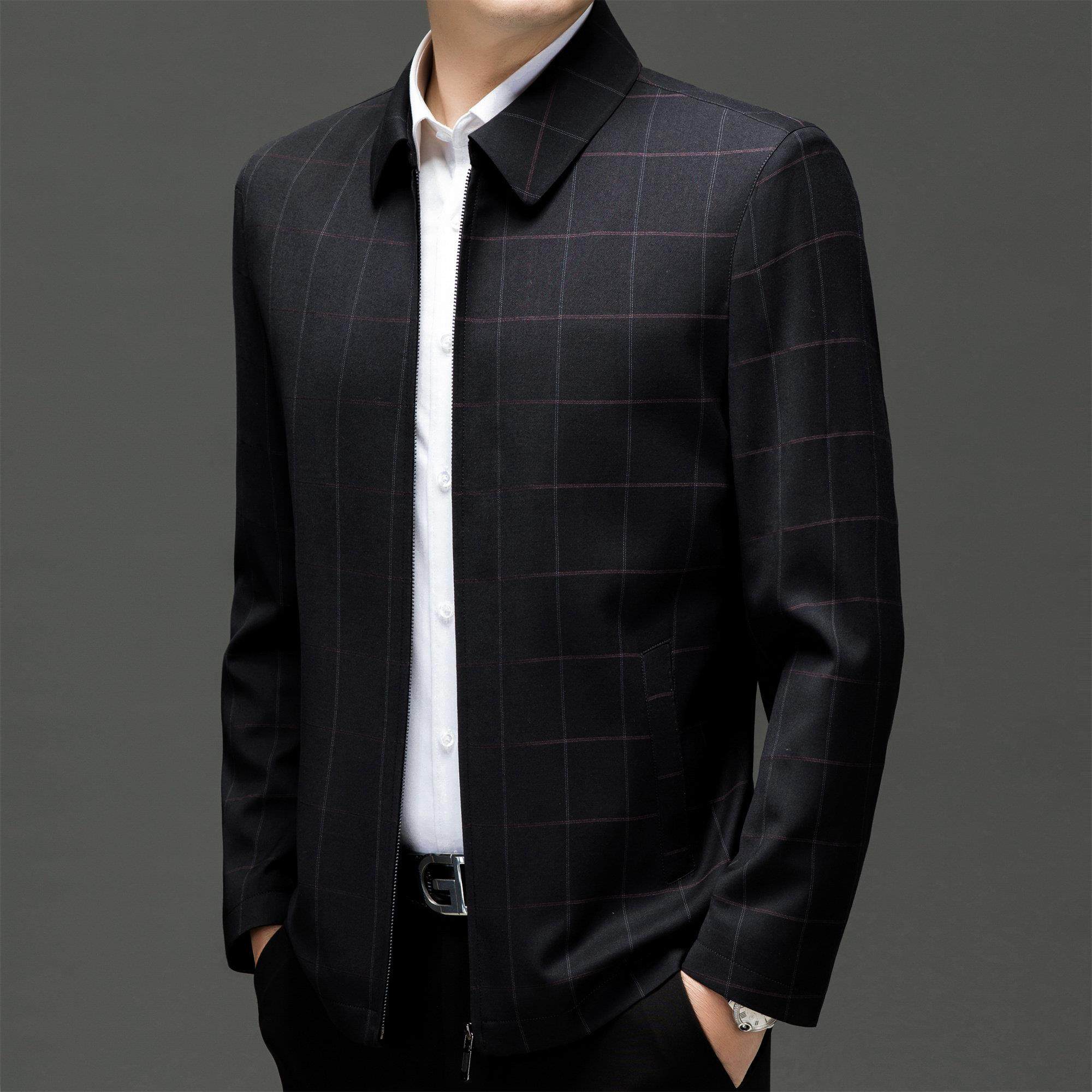 鄂尔多斯市产高档夹克男2025秋冬新款中老年爸爸装休闲中山装外套