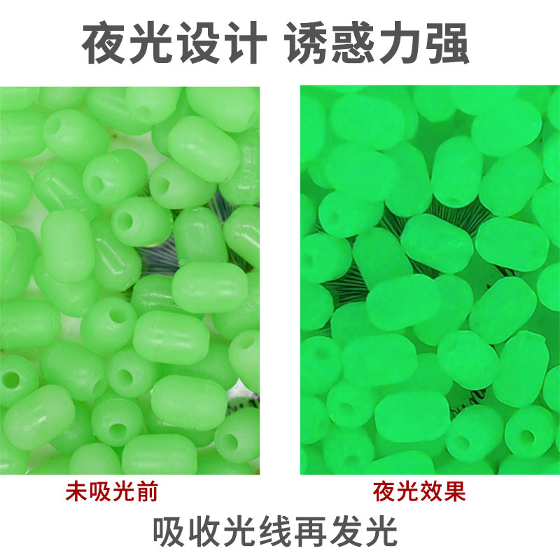 100枚软体防撞豆夜光珠绿色钓鱼档珠挡豆发光荧光小珠子渔具小配