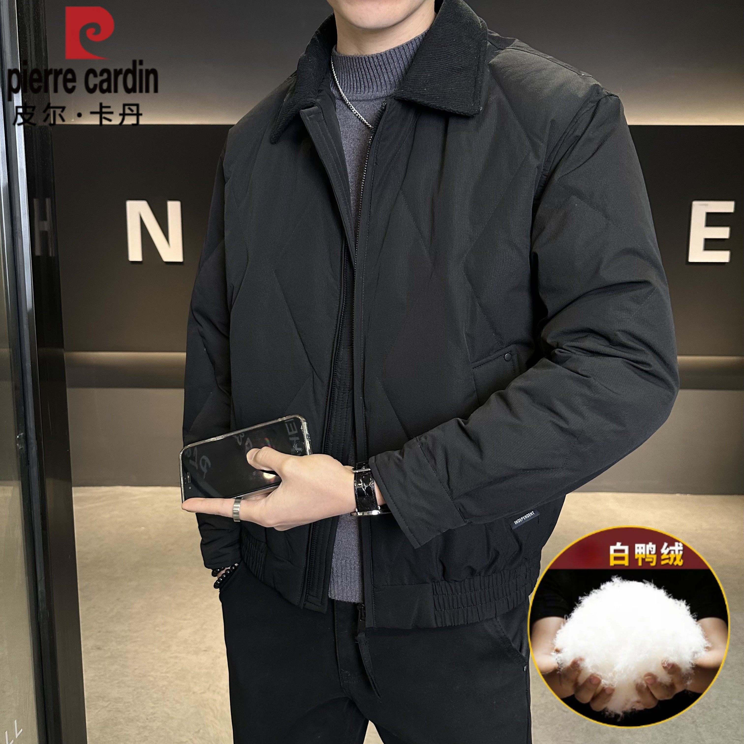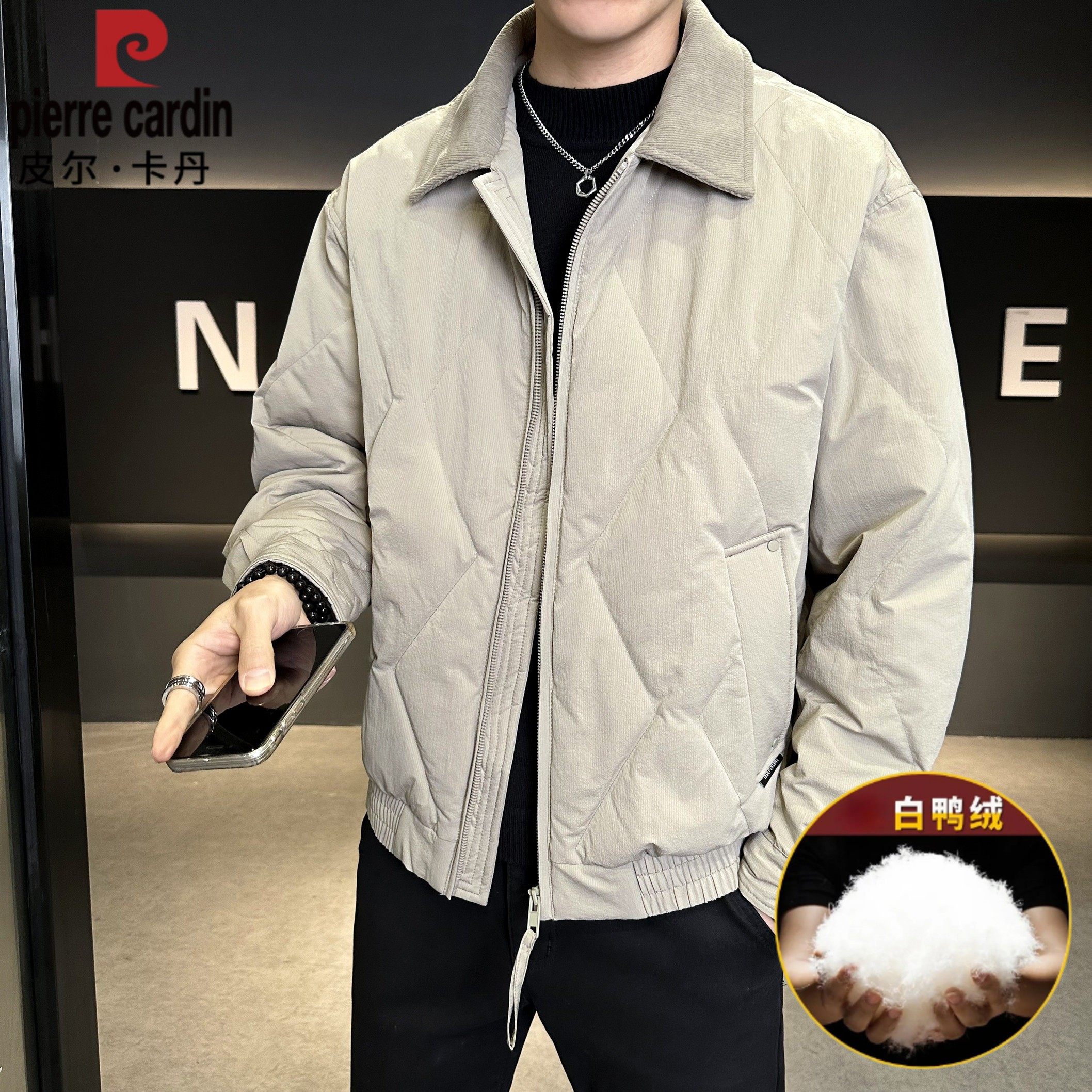 皮尔卡丹男士羽绒服白鸭绒保暖防寒服2025冬季加厚翻领外套男装