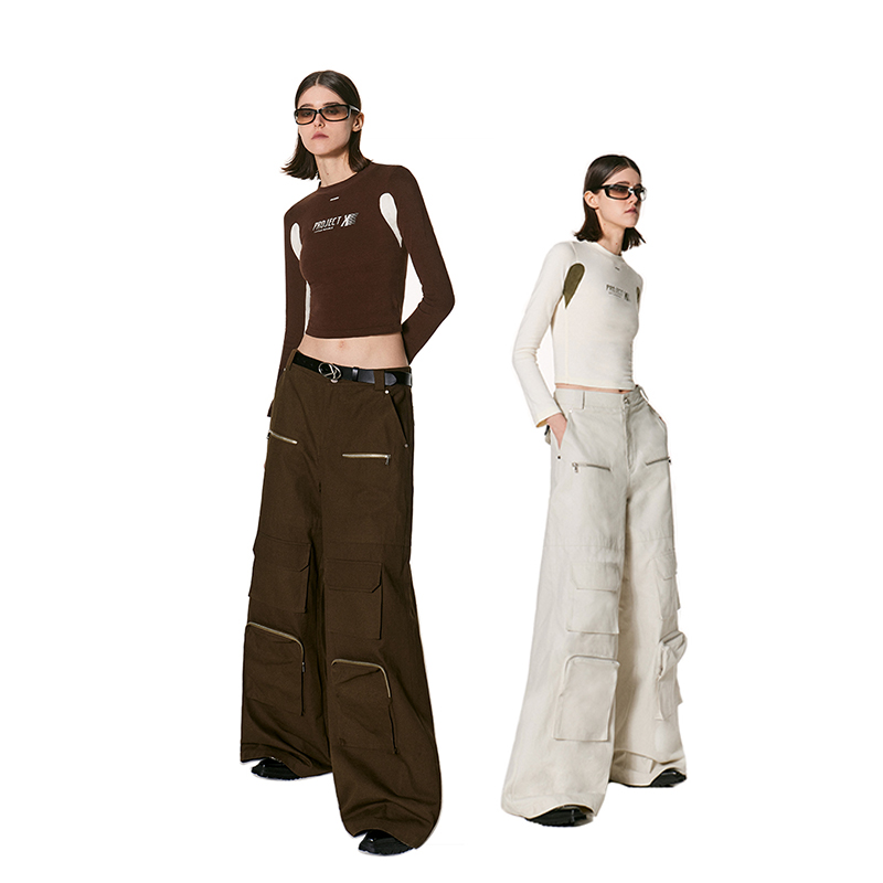 IMXS拼接印花紧身短t恤女长袖修身甜辣白色性感上衣女