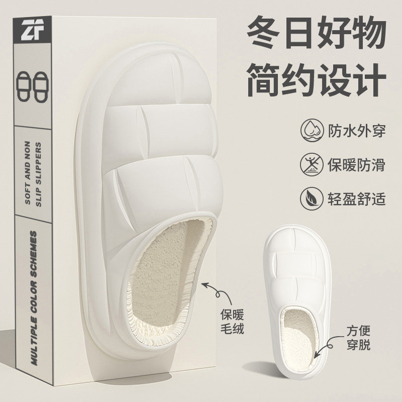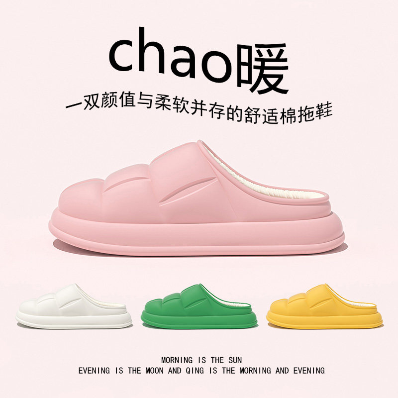花瓣棉拖鞋男冬季外穿2024新款室内居家加绒保暖防滑情侣防水棉拖
