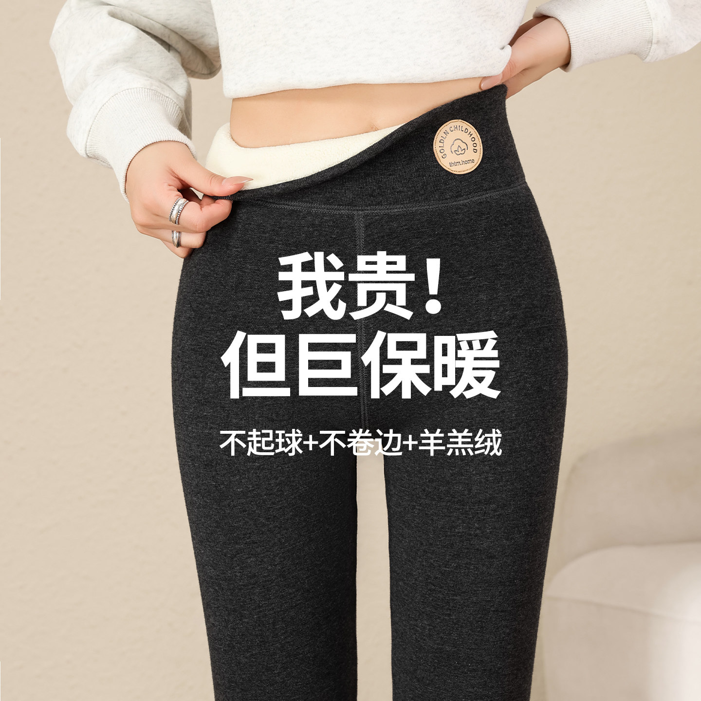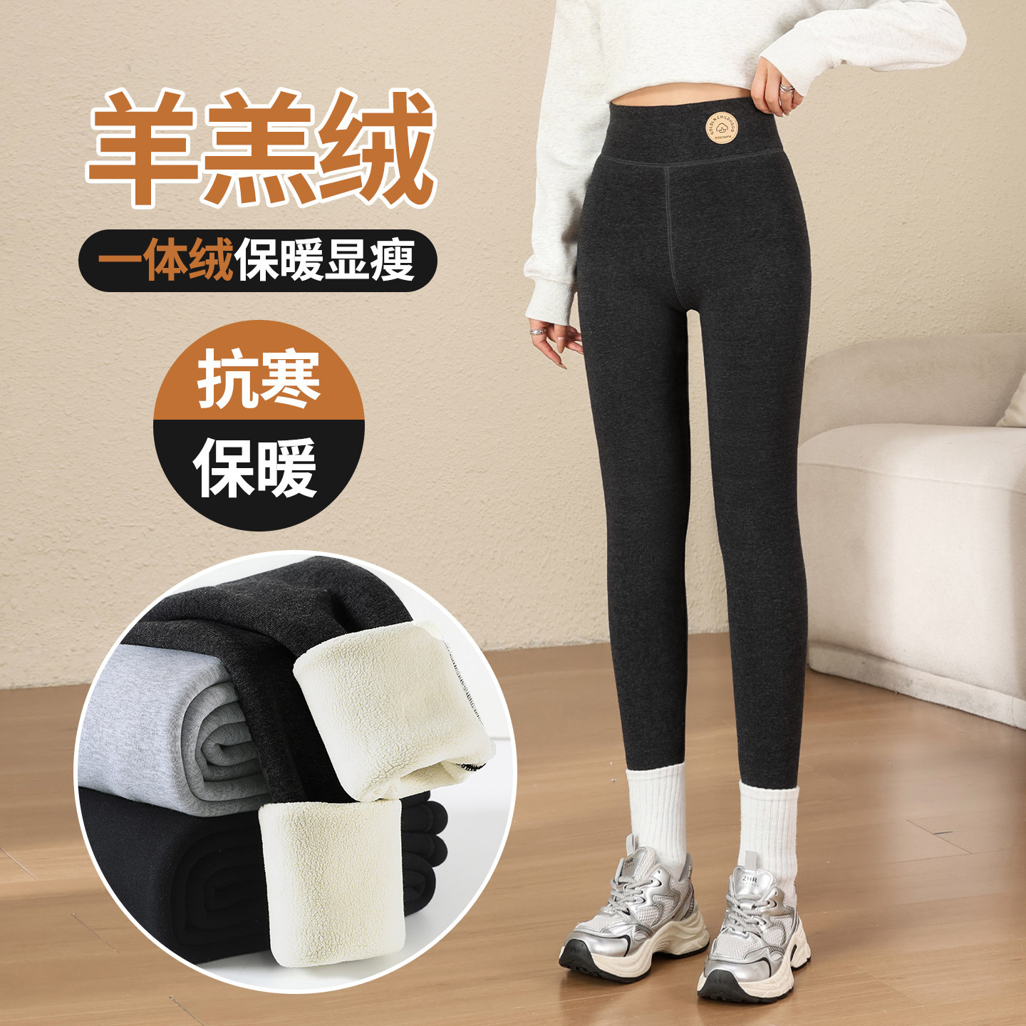 加绒加厚羊羔绒高腰打底裤女可外穿保暖弹力棉毛裤冬天一体绒长裤