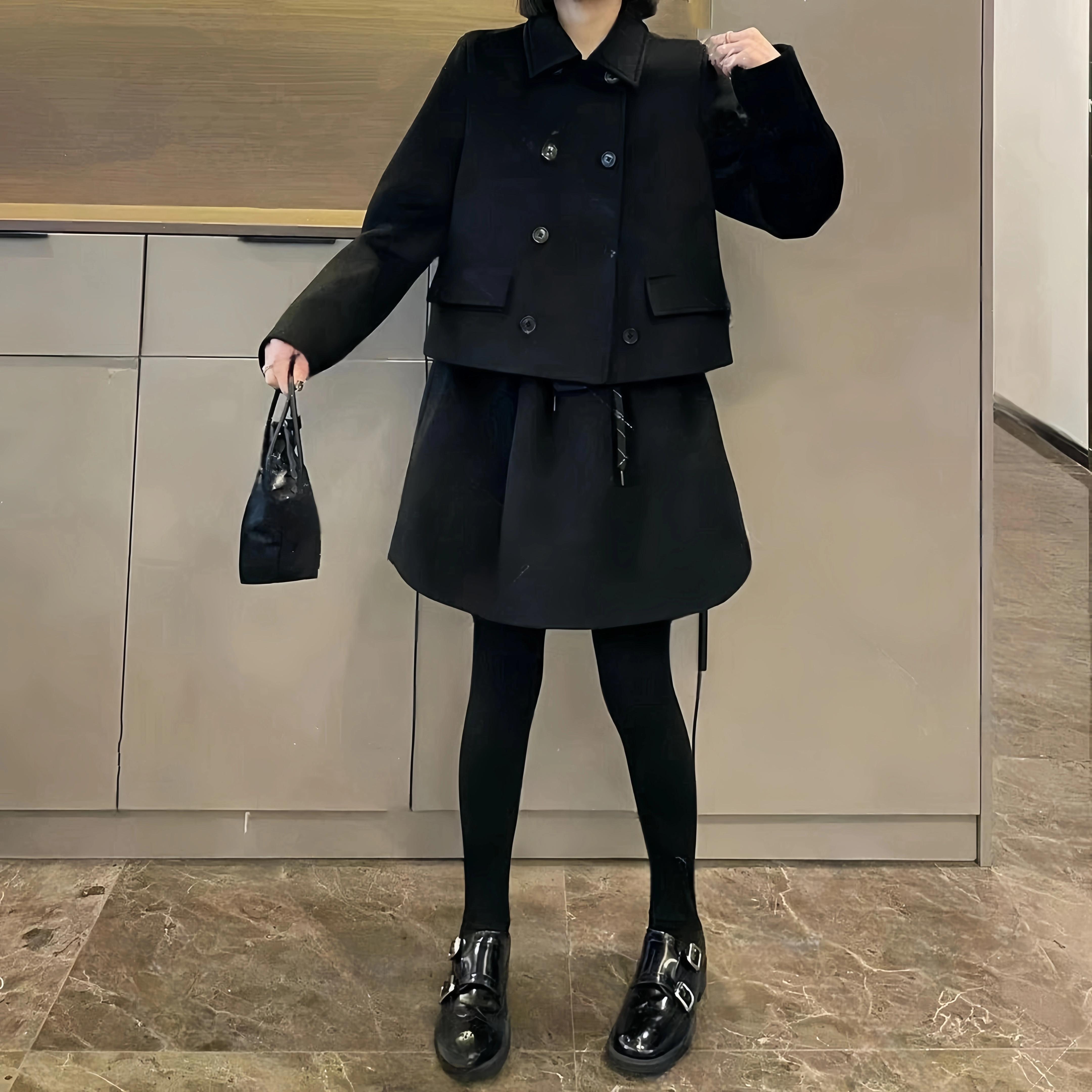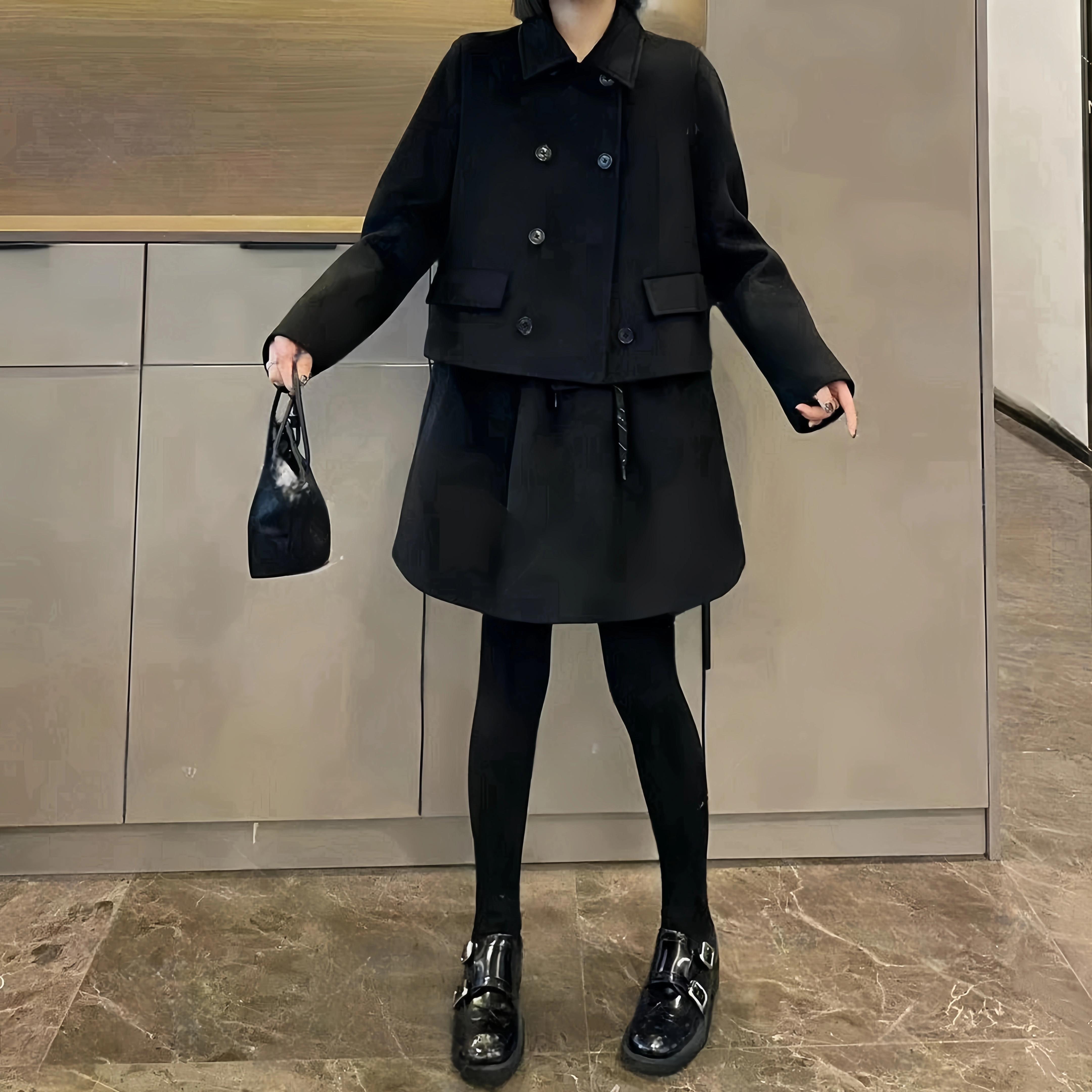 气质减龄新款两件套女2025秋季大码胖MM时尚休闲黑色呢子时髦套装