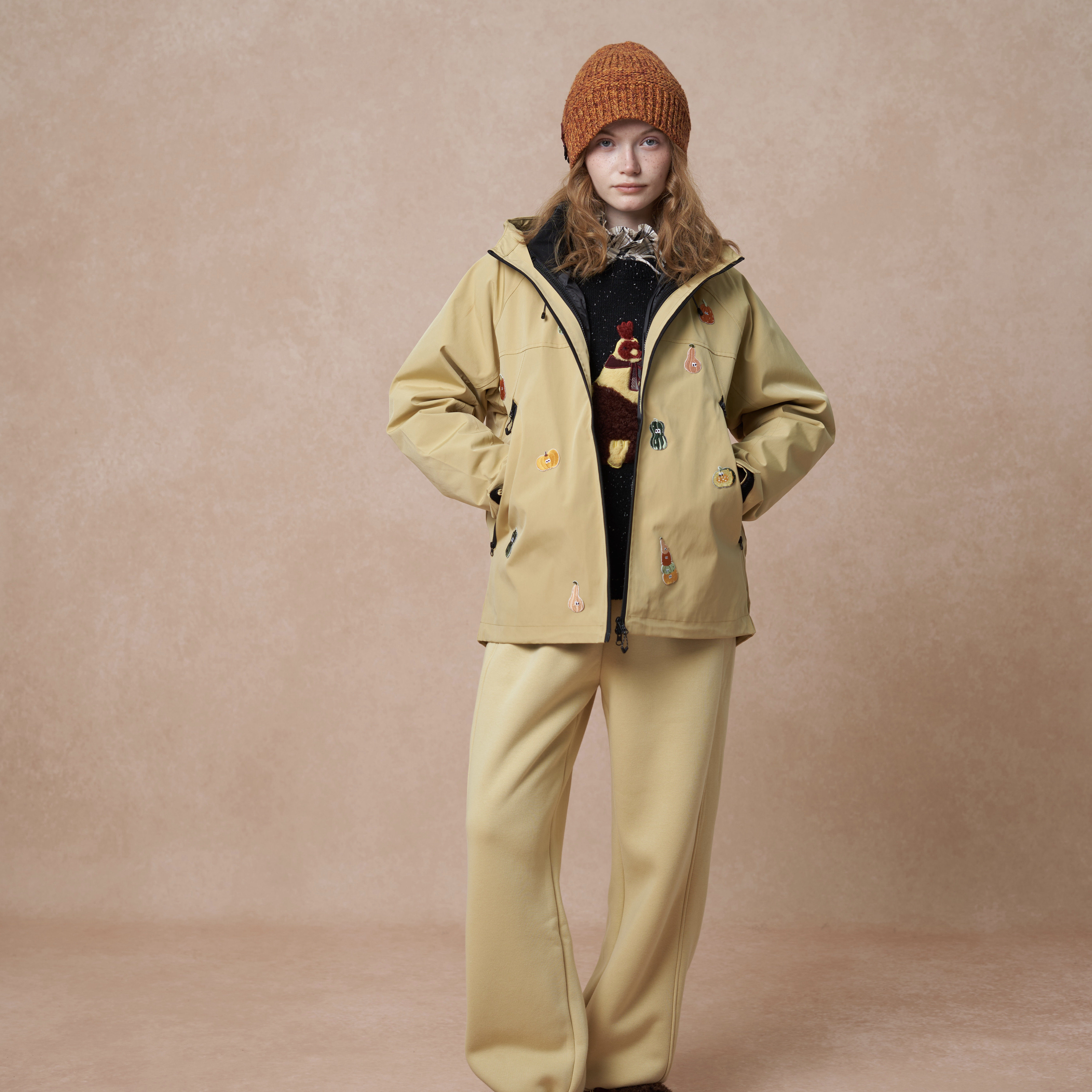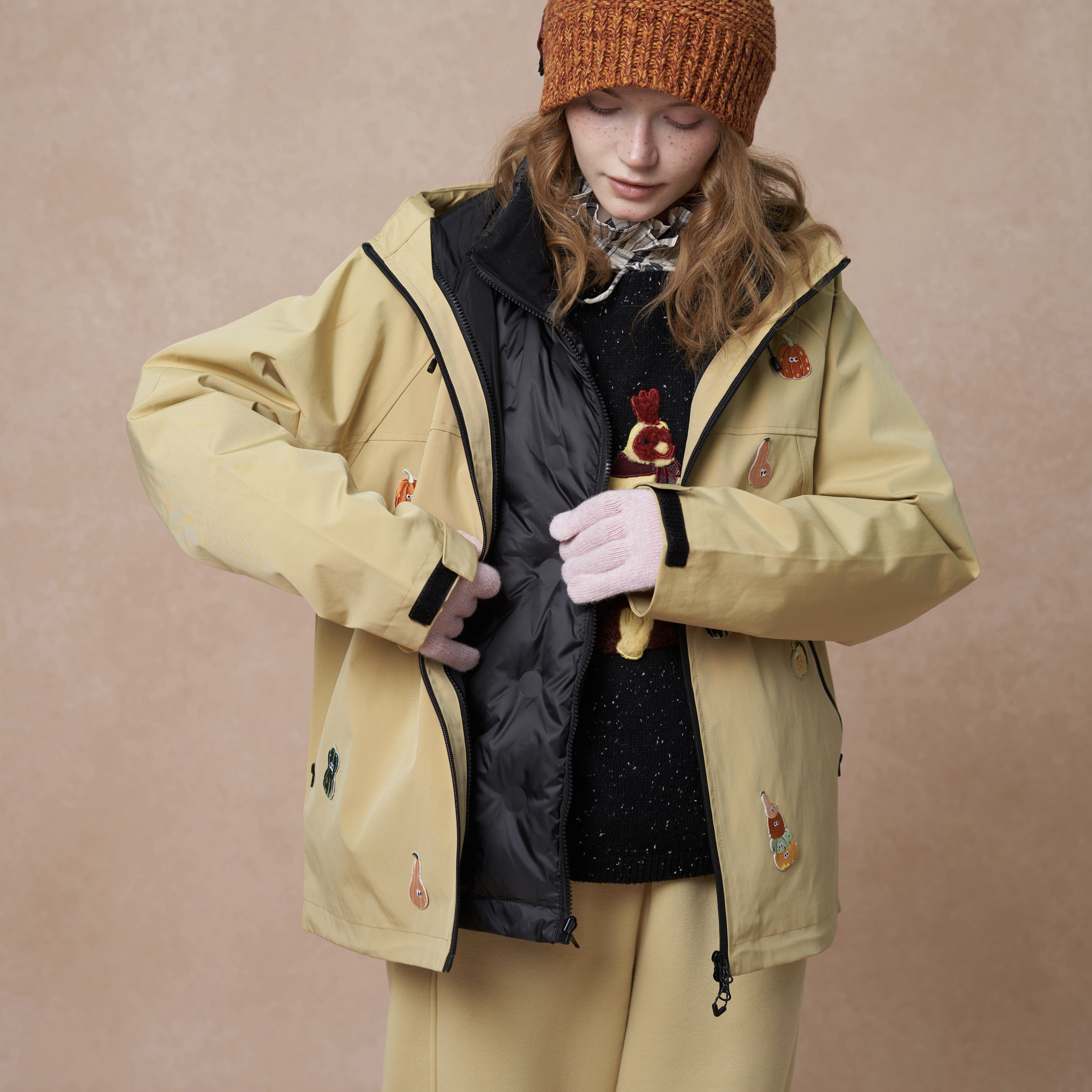 星山袋 米黄色两穿派克服冲锋衣外套 可脱卸内胆保暖羽绒服25冬