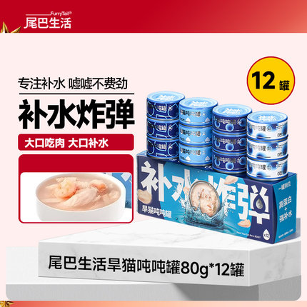 尾巴生活补水炸弹吨吨罐80g*12罐全阶段金枪鱼扇贝试吃零食罐头