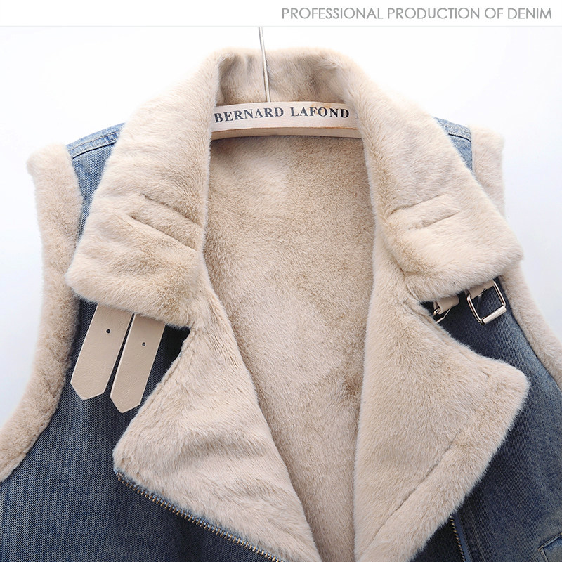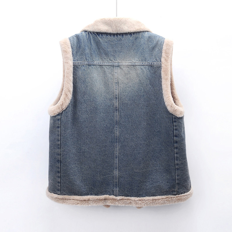 2025秋冬新款韩版潮流加绒加厚牛仔马甲女士宽松机车夹克背心坎肩