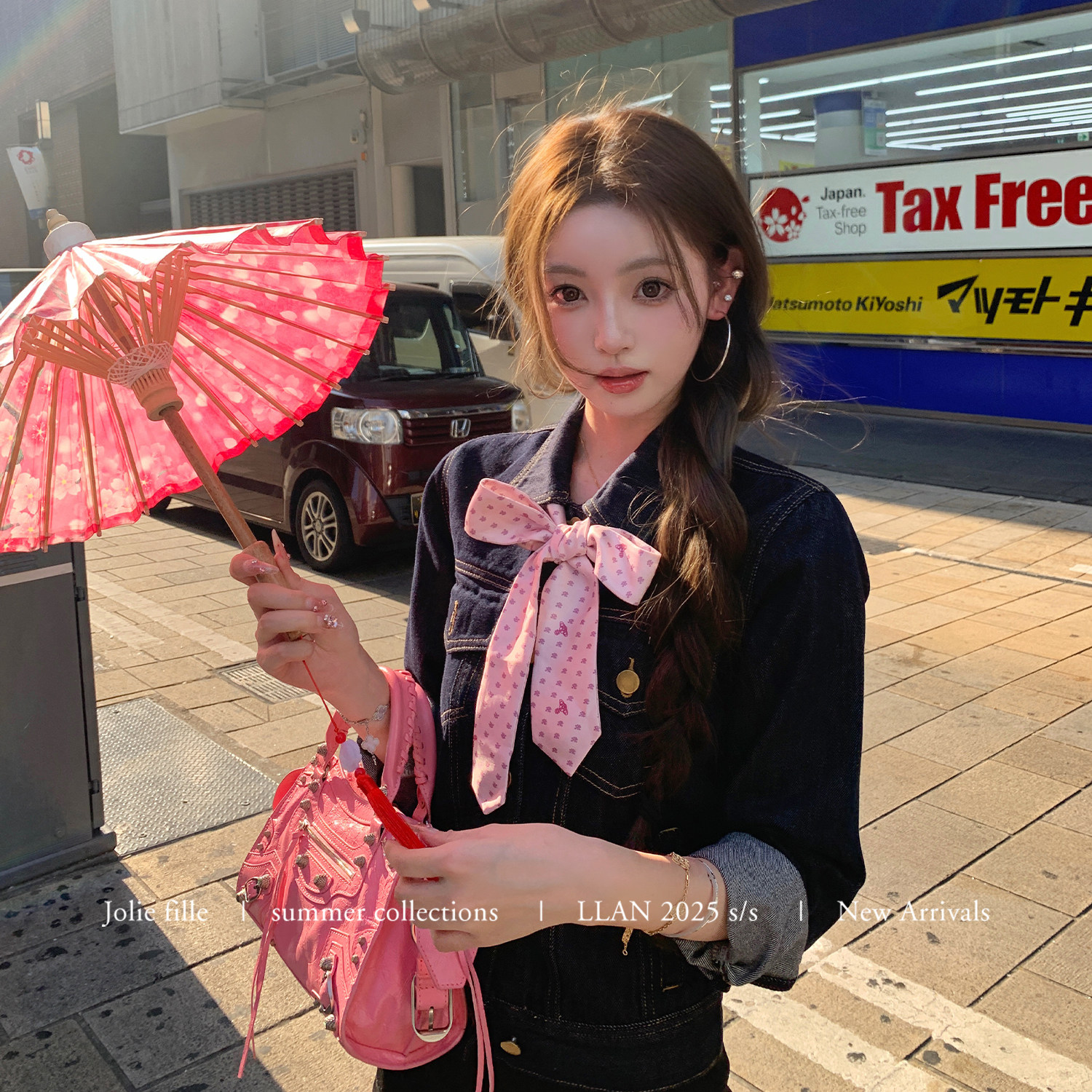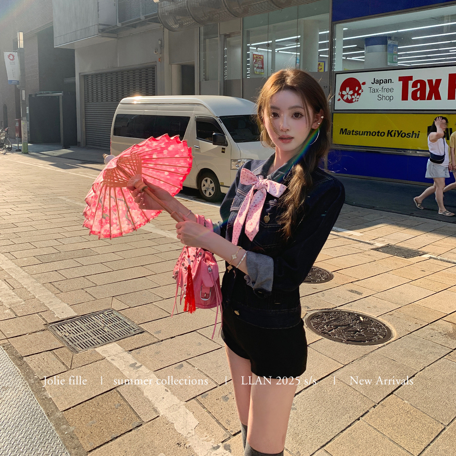 你的懒懒llan【霓虹把妹王】复古撞色明线设计时髦牛仔上衣外套女