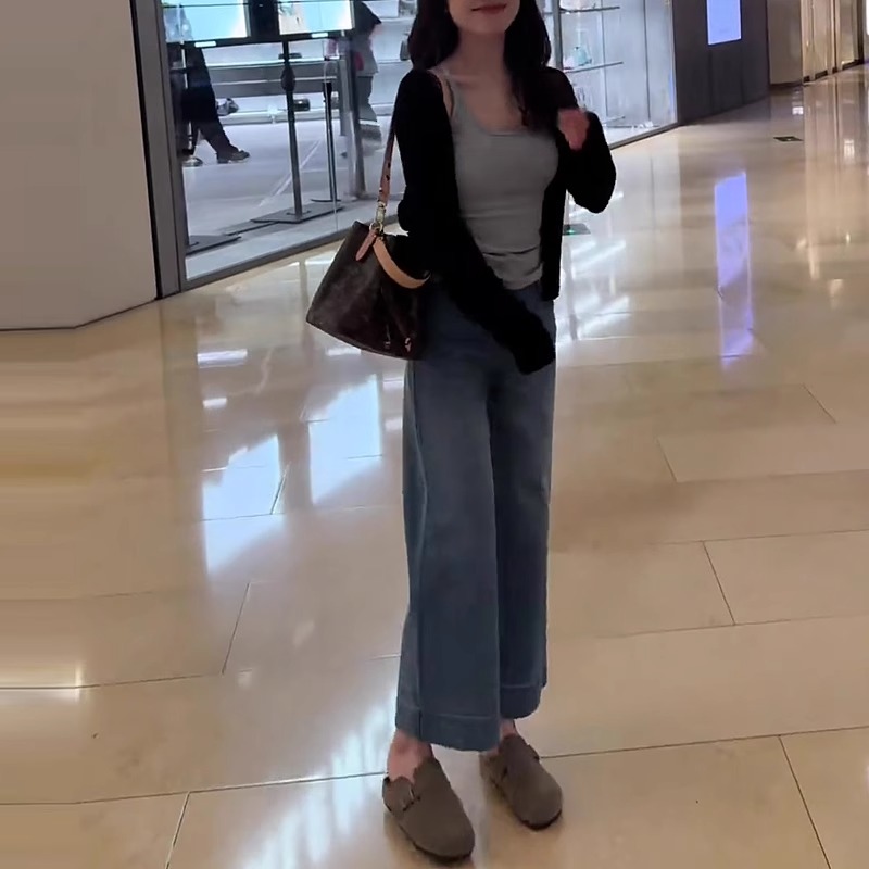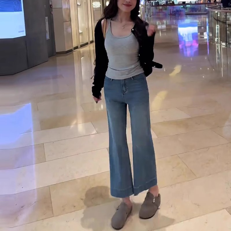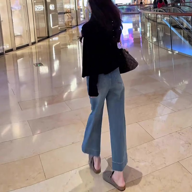 天丝牛仔裤女夏薄款2025年新款浅色直筒宽松显瘦窄版阔腿九分裤子