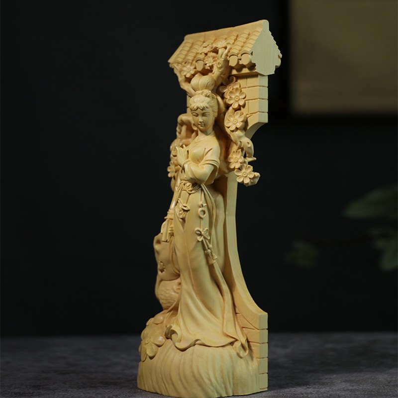 乐清黄杨木雕摆件家居饰品实木雕刻工艺礼品精品中式人物美女观梅
