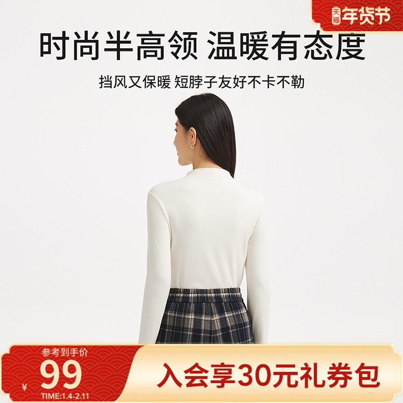 热风纯色长袖t恤2025年冬季新款女士绒感半高领亲肤软糯上衣内搭