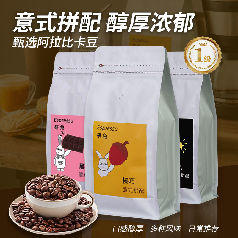研兔意式拼配咖啡豆黑森林咖啡粉美式商用深烘中度烘焙阿拉比卡