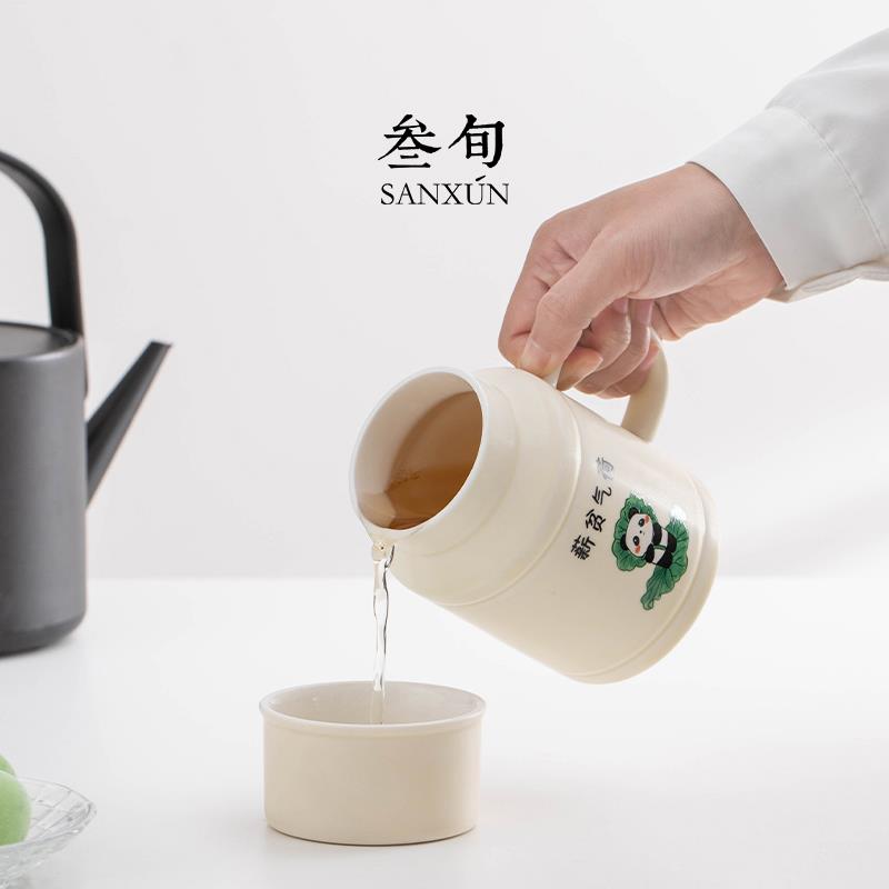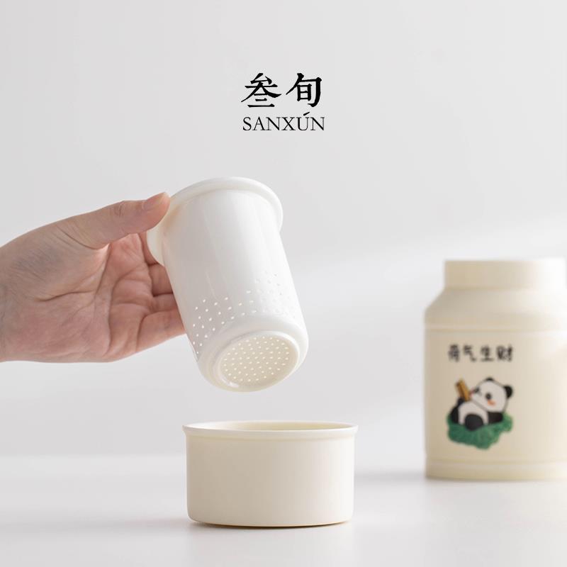 叁旬熊猫泡茶杯陶瓷带盖子过滤马克杯男女办公室大容量茶水分离杯