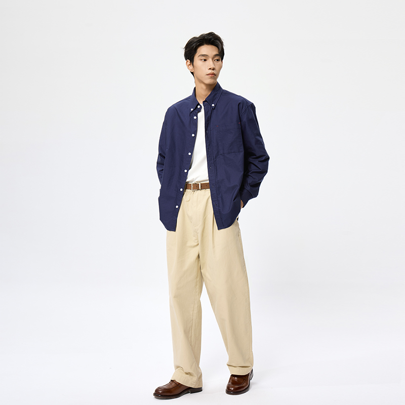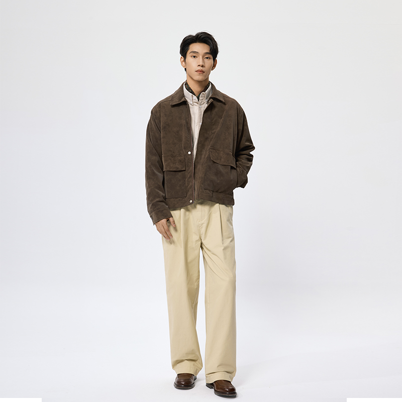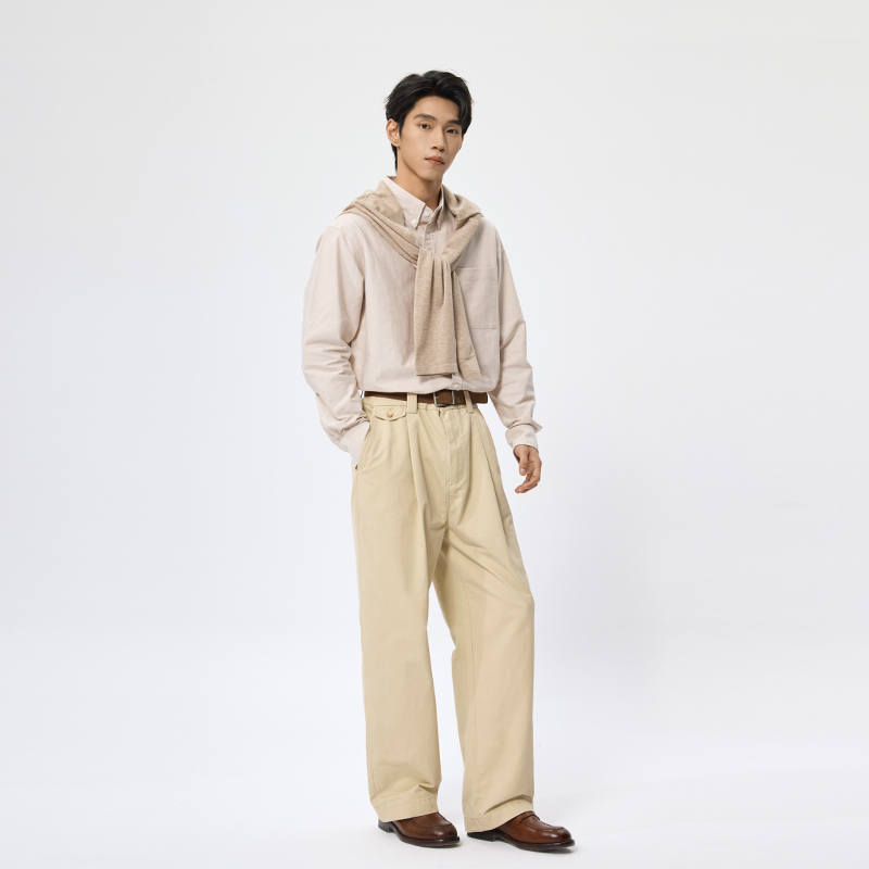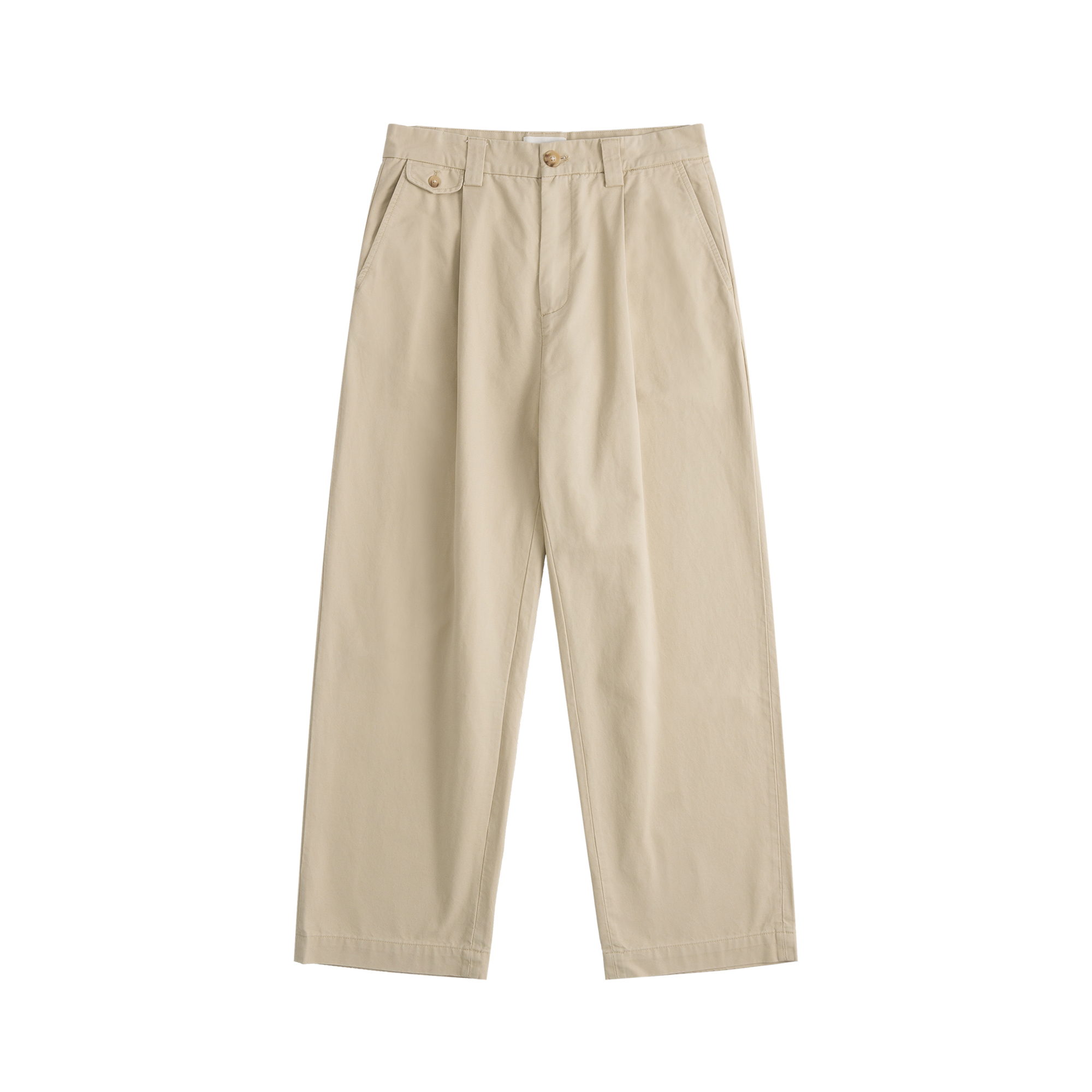 TUTM男装 纯棉水洗单褶休闲裤宽松直筒裤休闲百搭新款卡其色长裤