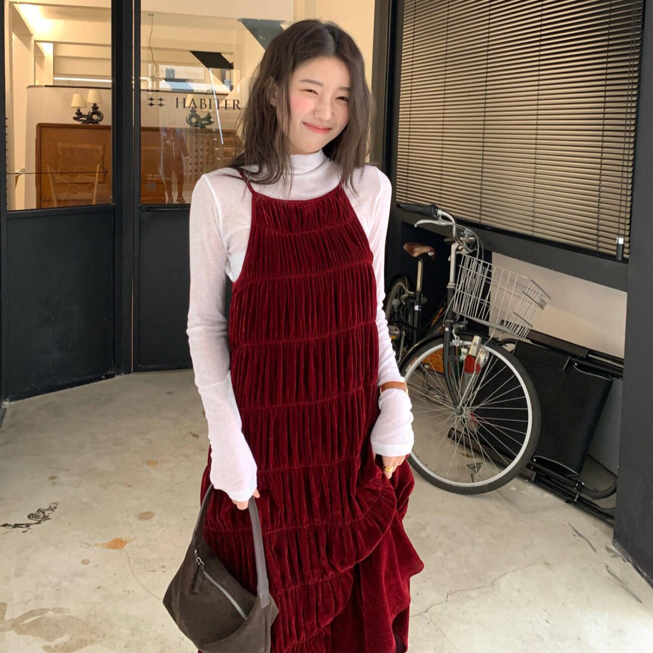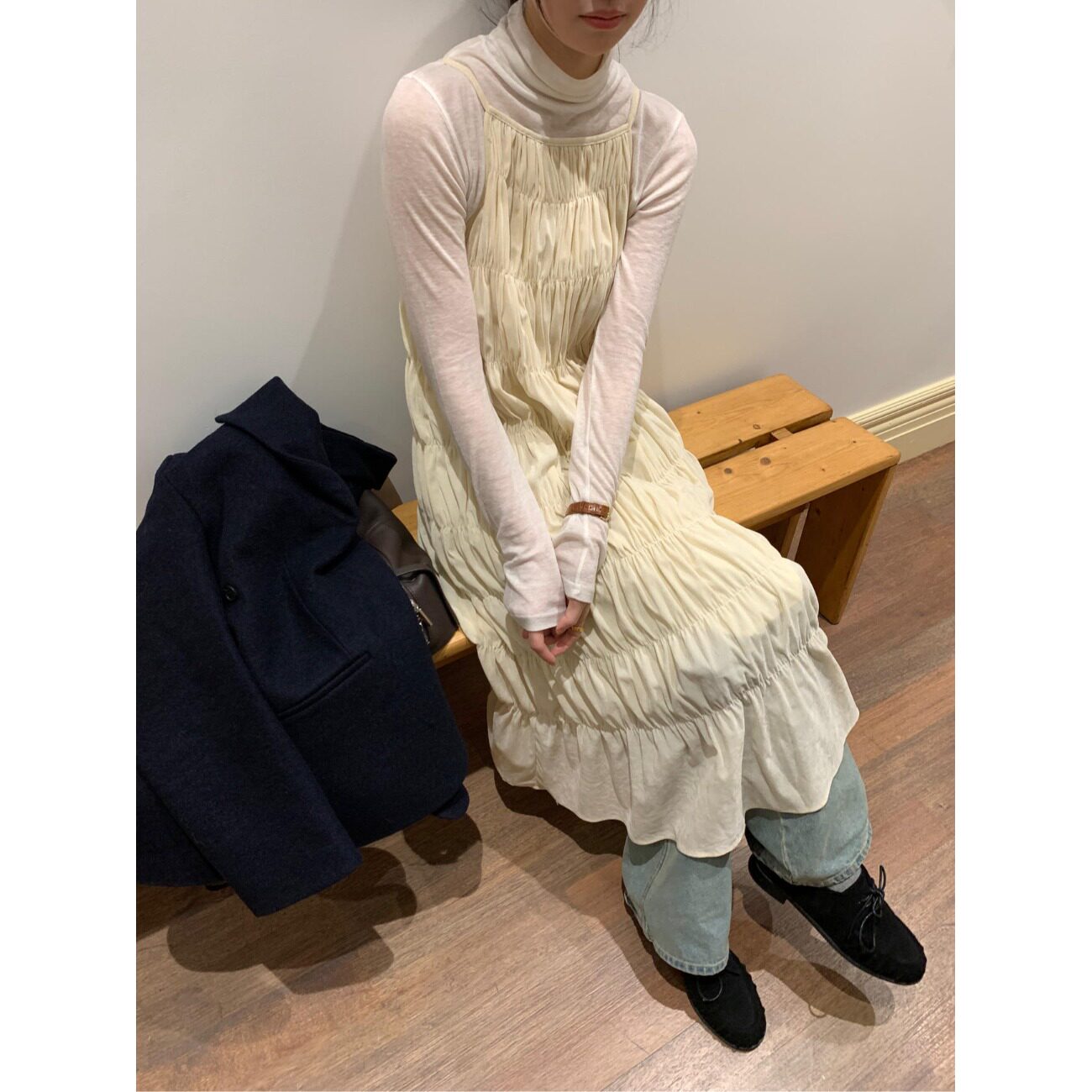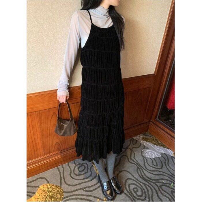 PPSHD韩国小众极简褶皱白色连衣裙显瘦背心长款吊带裙跌穿裙子